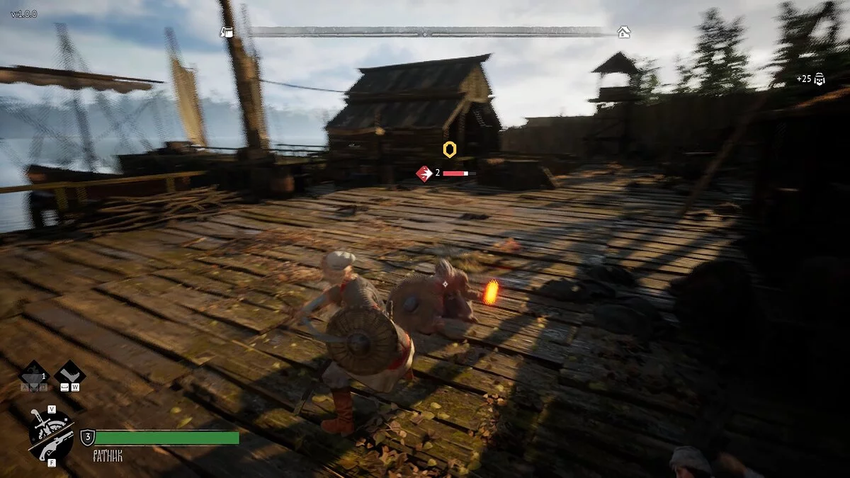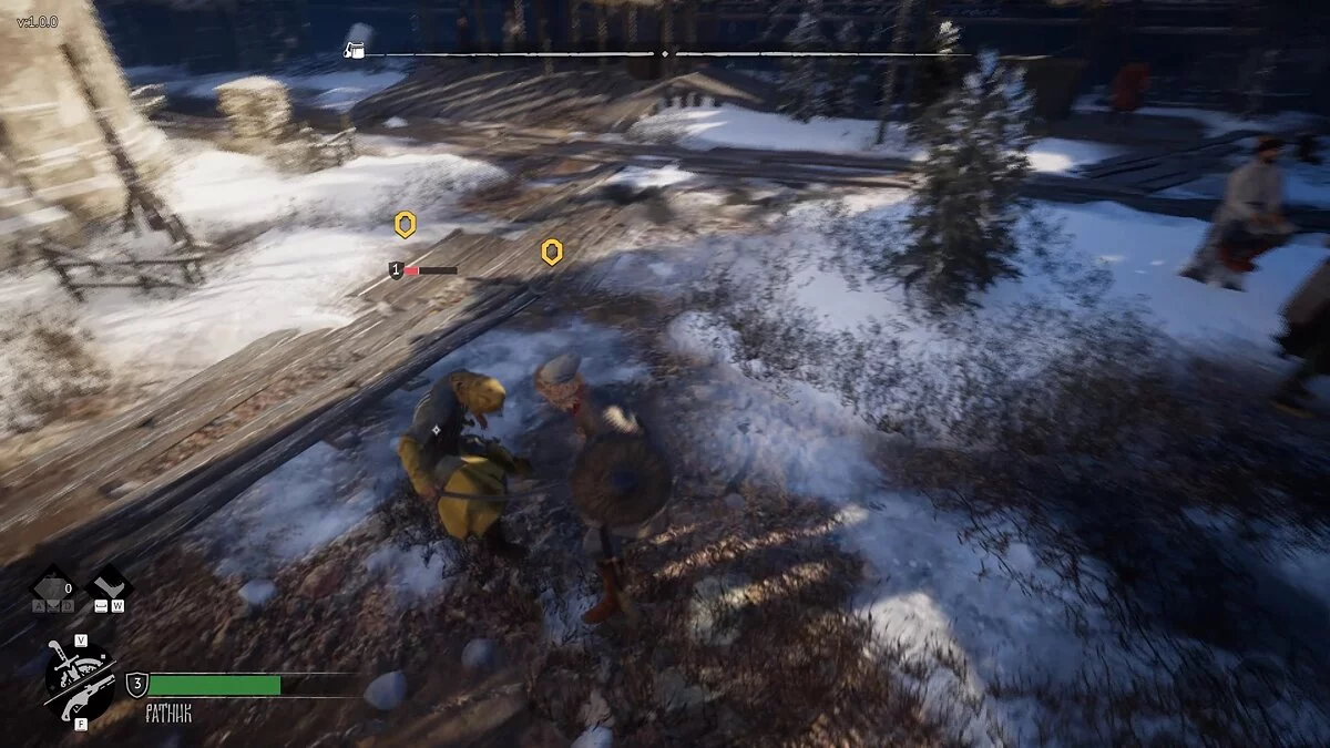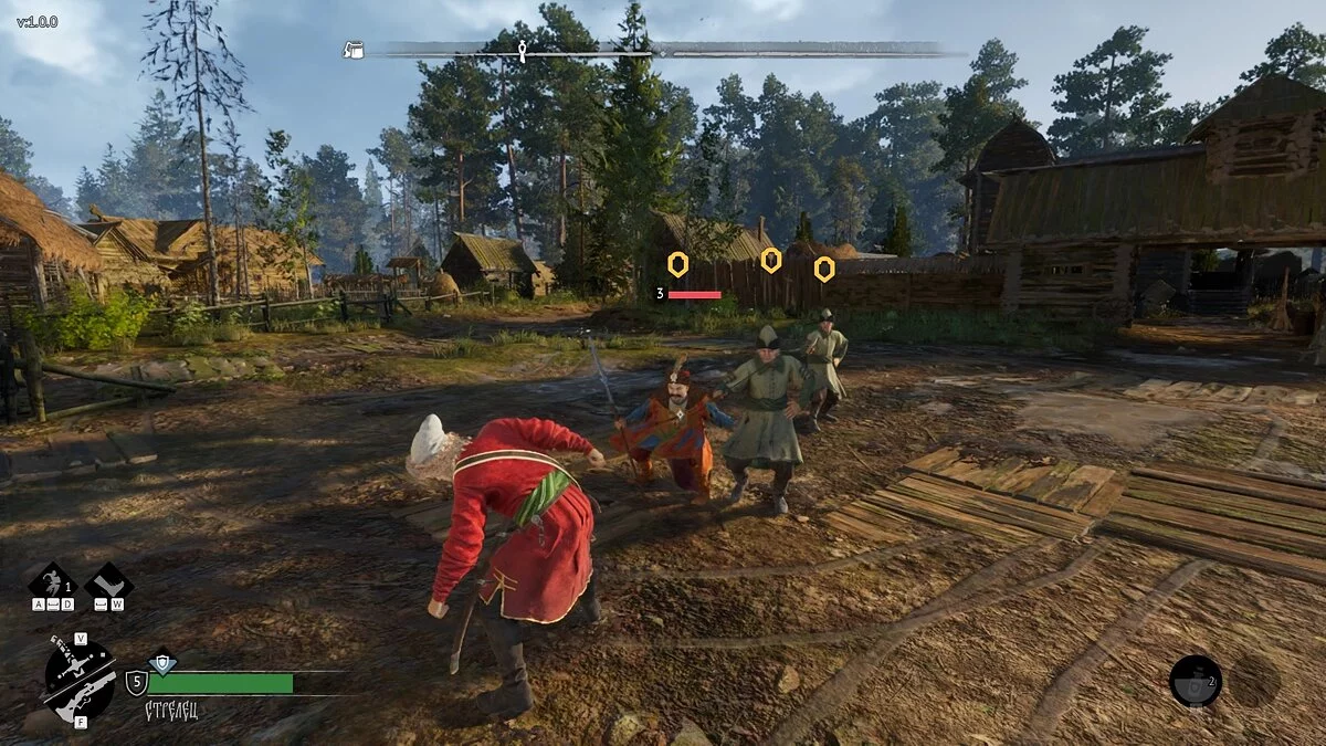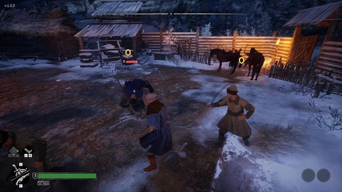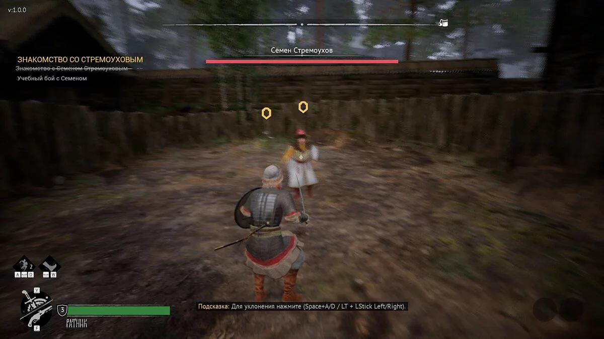 Обратите внимание, что ставить блок заранее не стоит — противник может использовать удар ногой, после чего выполнить серию атак, при помощи которой на высокой сложности просто убьёт Юрия. Если здоровье опустилось до критической отметки, отойдите на достаточное расстояние и выпейте малое лечебное зелье (если, конечно, вы экипировали его в разделе «Снаряжение»).