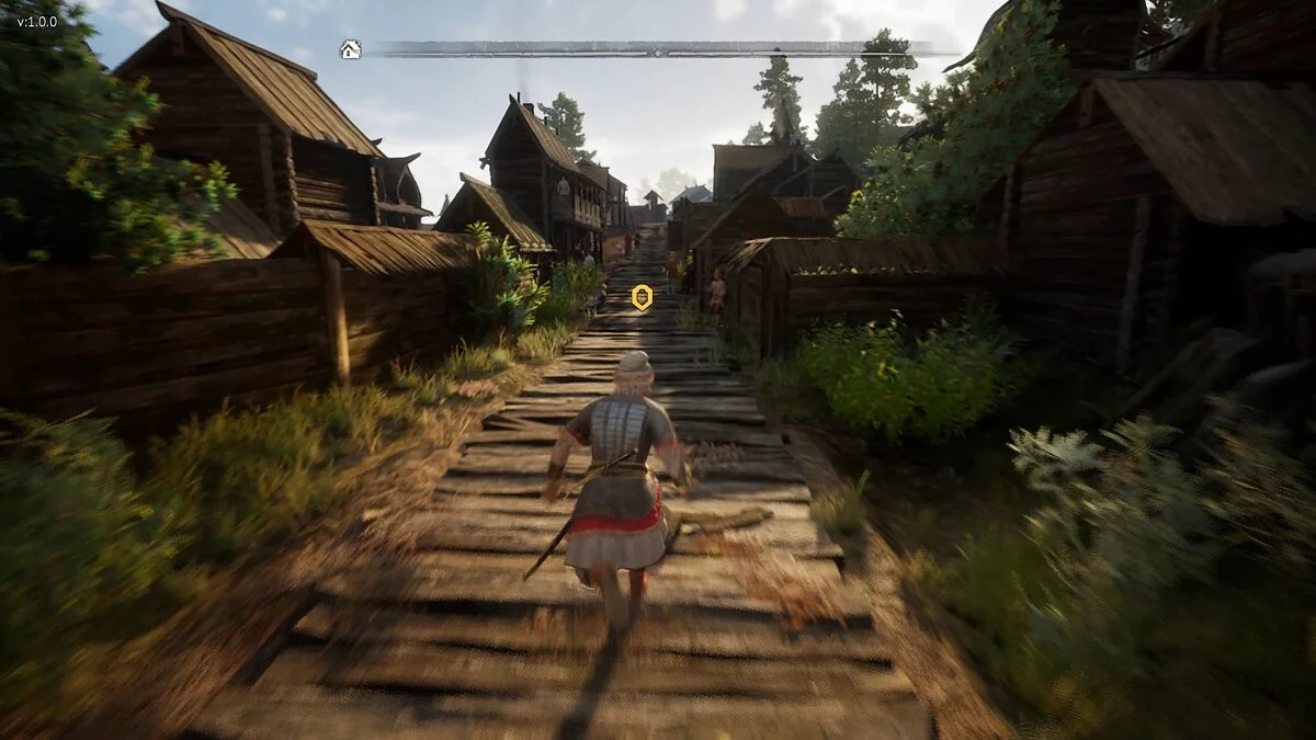 Бегите в отмеченную на карте деревню и отыщите дом по описанию из письма. Найти его будет нетрудно: как только войдёте в поселение, отыщите самый высокий дом. Нужное строение находится прямо перед ним.
