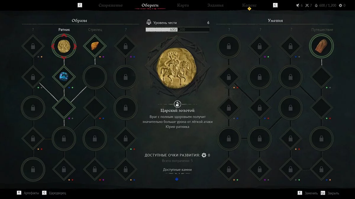 После победы вы получите артефакт «Царский золотой». Сразу же перейдите в раздел «Обереги», разблокируйте ячейку и наденьте предмет.