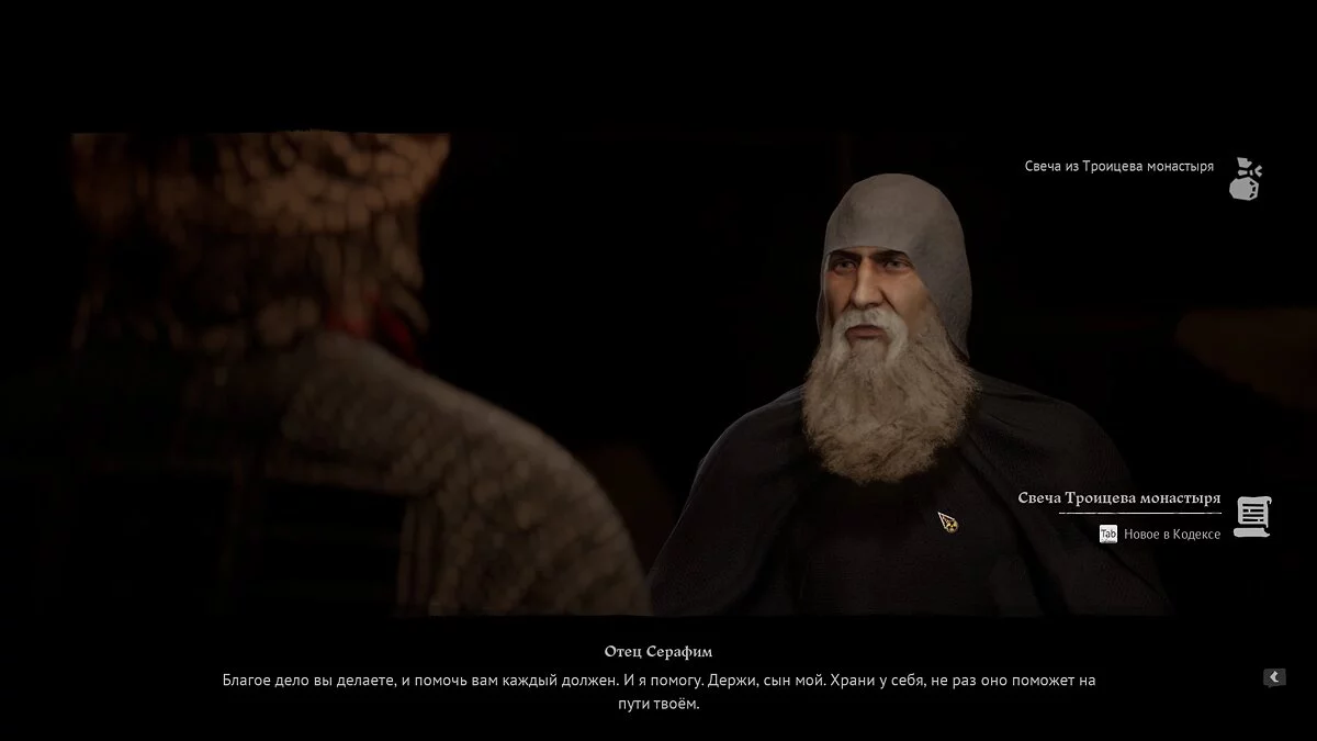 Вернитесь к отцу Серафиму и расскажите о случившемся. Если выбрать вариант «На душе неспокойно. Помоги мне, отче», то священник отдаст артефакт «Свеча Троицева монастыря».