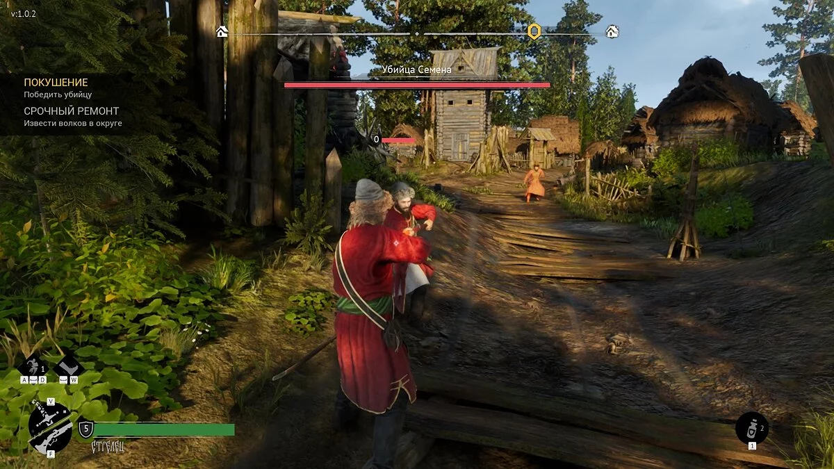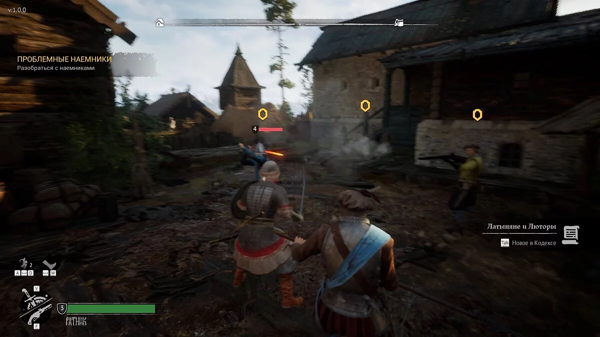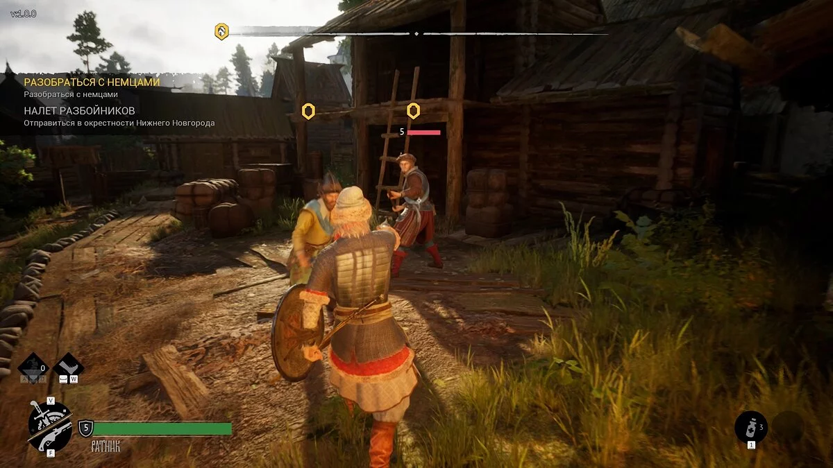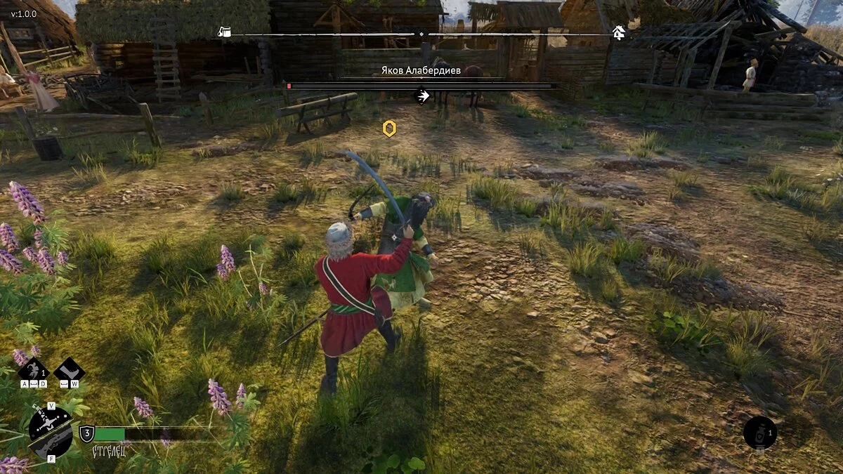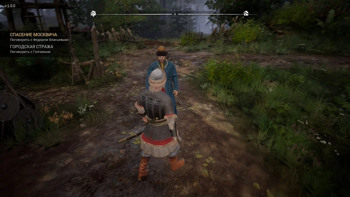 Настало время познакомиться с ополченцем Пожарского, о котором рассказывал Голчин. Просто следуйте за маркером, чтобы перейти в другую локацию и отыскать мужика у его дома. Перед этим рекомендуем восполнить здоровье, так как вам предстоит сражение с первым сильным врагом в игре.