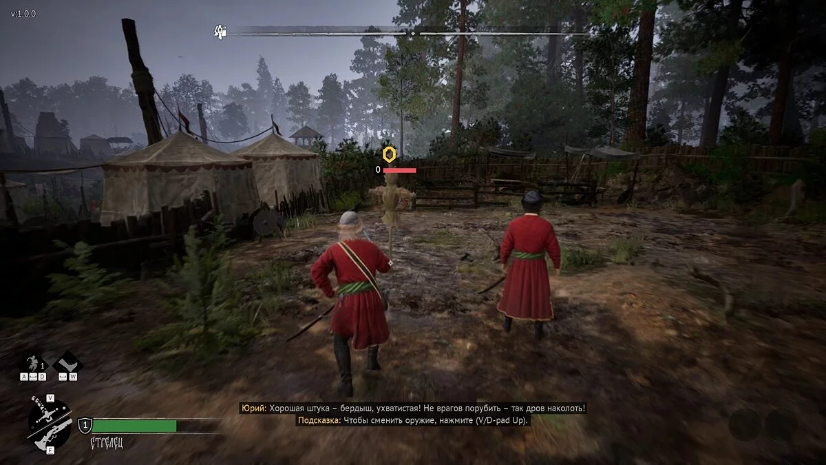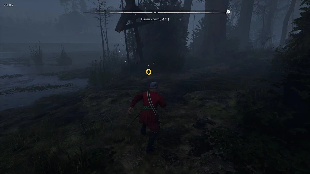 Скачите по тропе за маркером и познакомьтесь с Мининым в его лагере. Он отправит Юрия к воеводе, который выдаст новую экипировку «Стрелец». Однако стоит отметить, что вместе с ней у вас изменится и вооружение, а также на первых порах будет недоступно малое лечебное зелье.