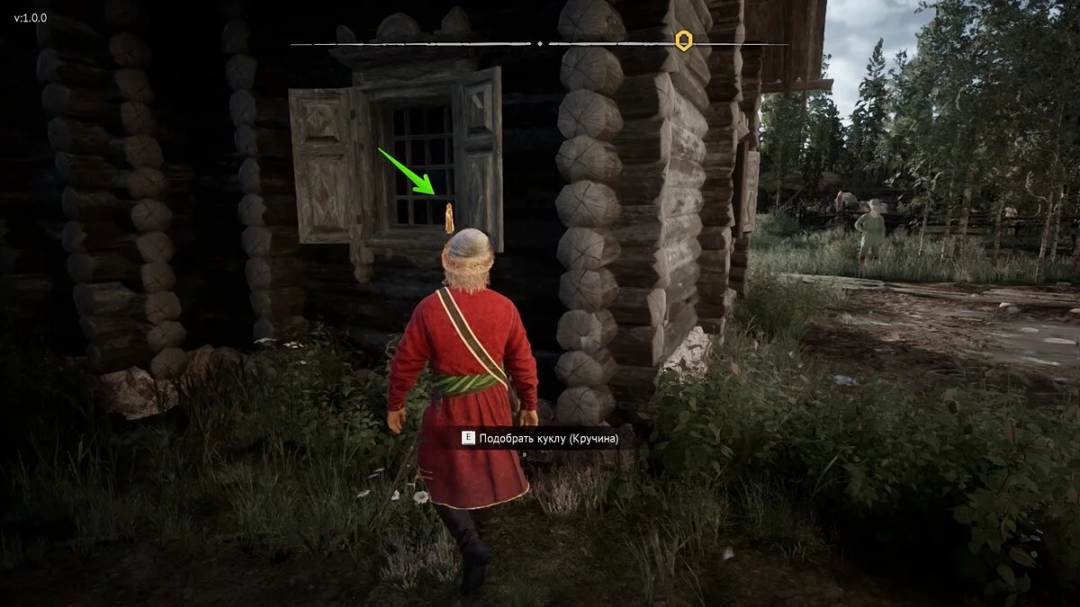 - Теперь обойдите поместье и у дальнего окна за решёткой заберите вторую (кукла Кручины).
