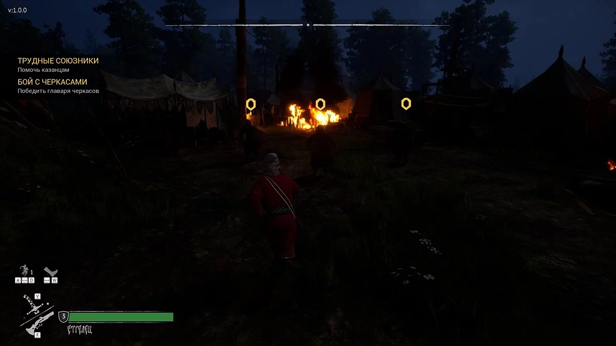 Задание начнётся после того, как вы расскажете о случившемся с дезертирами князю Пожарскому. Езжайте в центральную часть локации и доберитесь до лагеря казанцев, а также познакомьтесь с воеводой. Он попросит помощи: нужно скрытно проникнуть в лагерь к Черкасам и устроить диверсию.