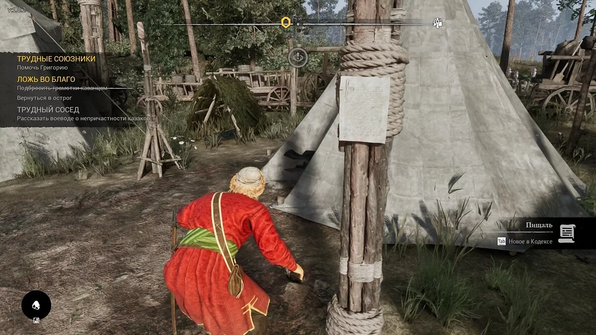 Следуйте за маркером на карте и отыщите избушку Заруцкого. Он отдаст три письма, которые нужно скрытно доставить в лагерь казаков, стрельцов и в палаты. Подобным вы уже занимались, поэтому проблем не возникнет.