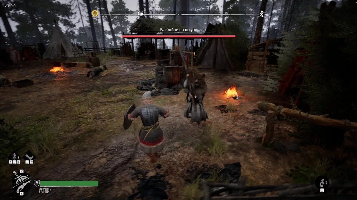 После беседы со старцем бежим дальше и натыкаемся на медведя. Но это не самый сложный противник в этом сегменте. Одолев его, перед протагонистом появится воплощение злого Юрия, который примкнул к ляхам.