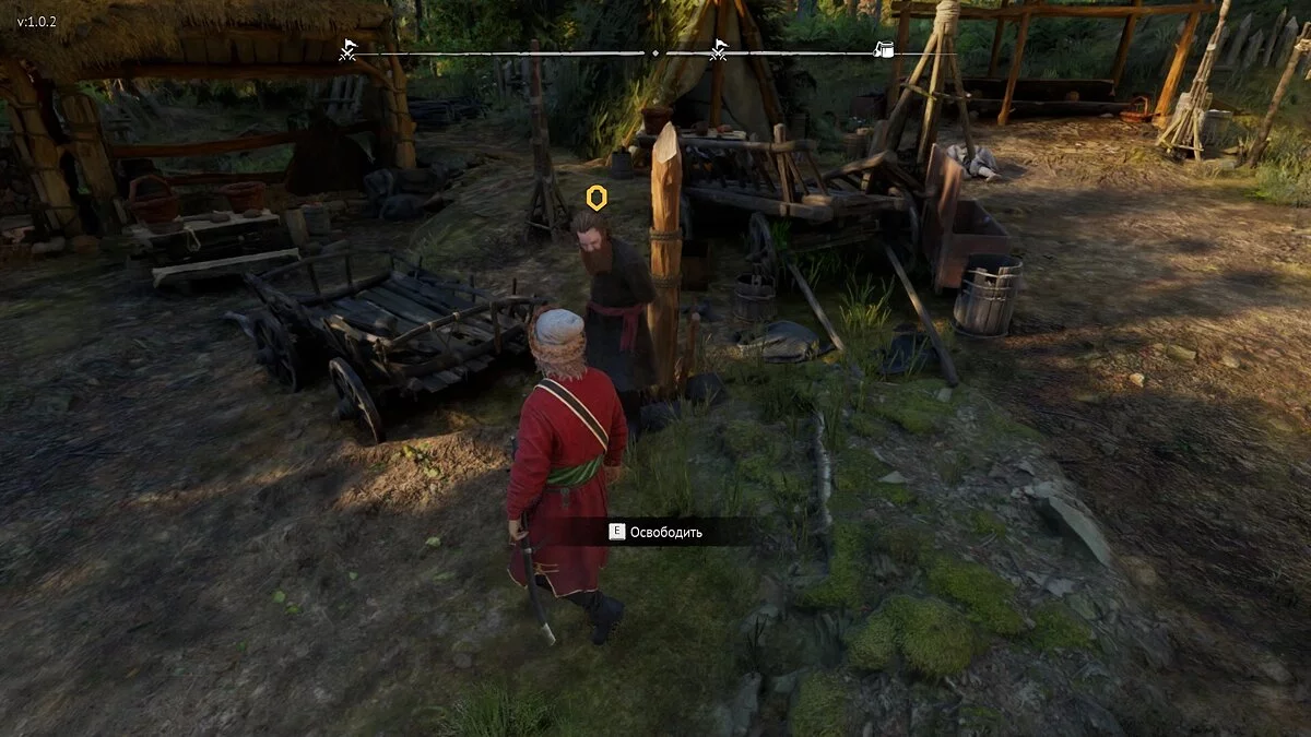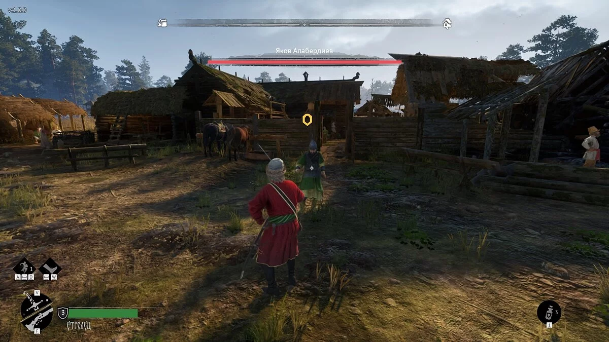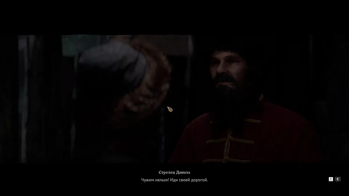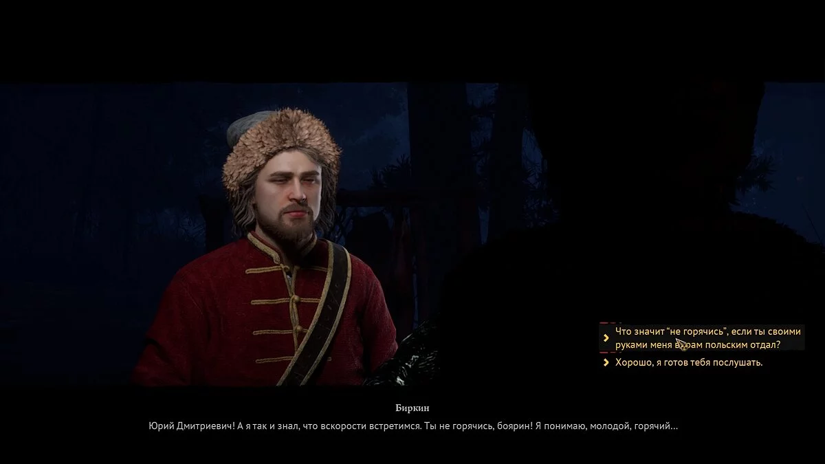 Переодеться, к слову, можно прямо в избушке, где находится Заруцкий. Оседлайте лошадь и скачите за маркером, пока не начнётся катсцена. В ней боярин отпускает своего слугу и принимает бой.