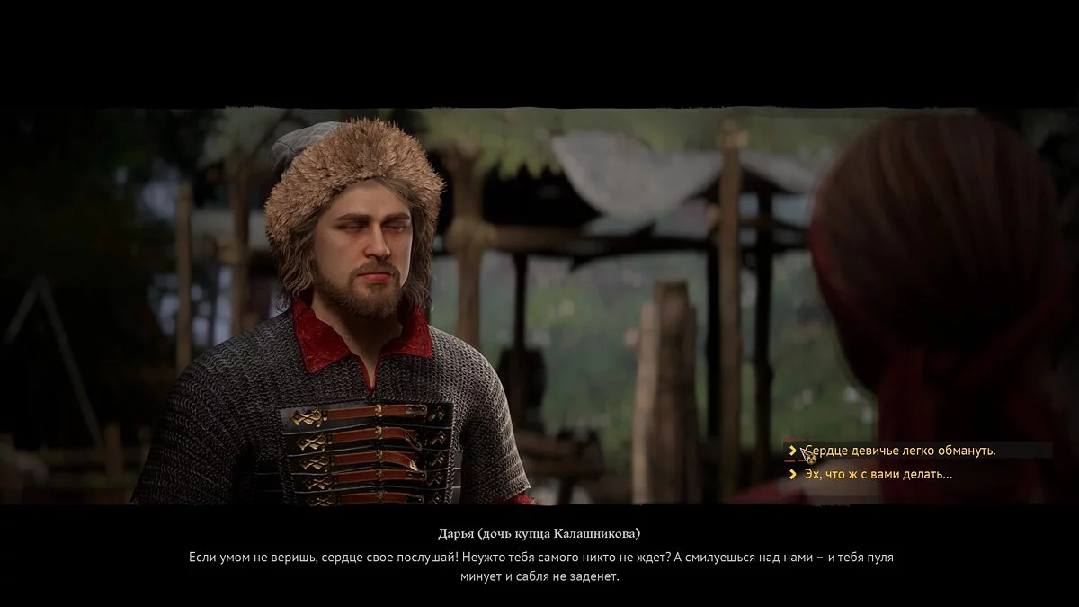 На заднем дворе в одной из палаток заберите шкатулку с драгоценностями и передайте её Устинье. Вам также придётся выбрать, что ответить девушке. Независимо от того, соврёте вы ей или скажете правду, получите только 100 единиц опыта. Однако это может повлиять на скрытый параметр кармы, который, в свою очередь, скажется на концовке игры.