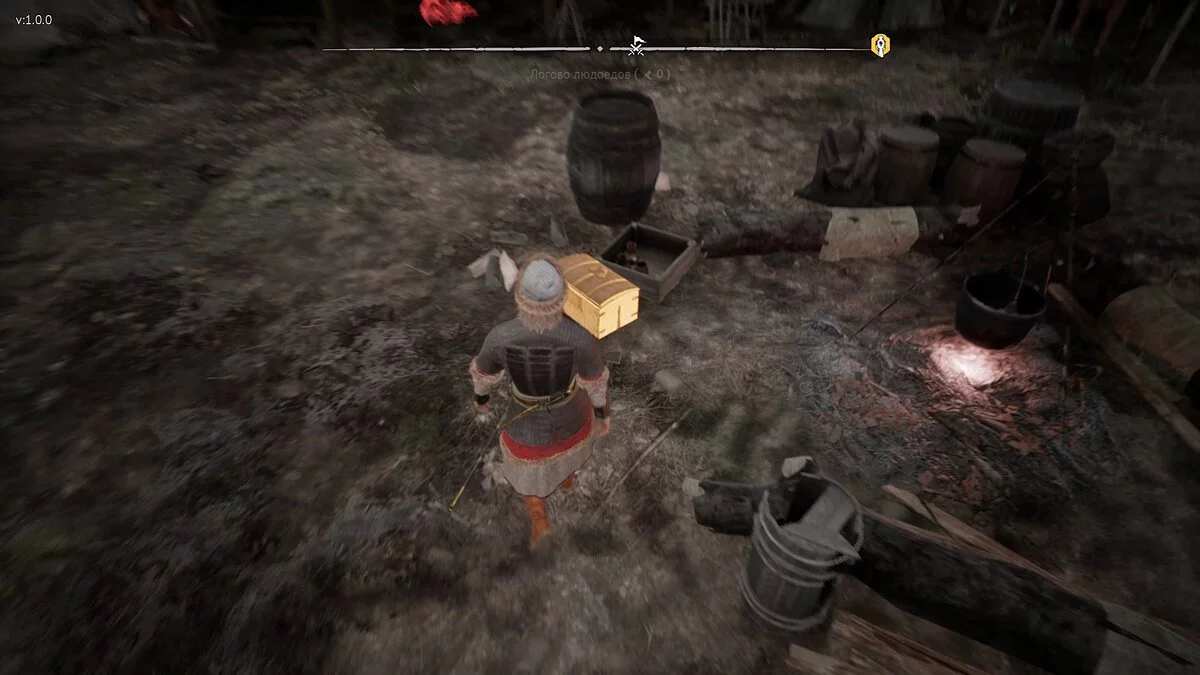 Торговец расскажет о пропаже своего добра, а на карте появится местоположение логова людоедов. Если вы взяли квест ночью, отправляйтесь в сторожку и смените время суток, так как по прибытии в лагерь не найдёте врагов. Можете устранить их всех бесшумно, как это сделали мы, после чего осмотреть единственный сундук.