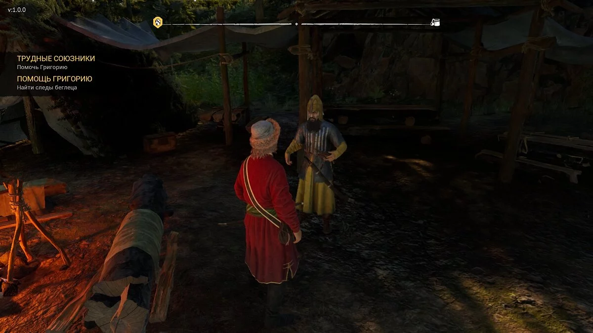 Возвращаемся к Стремоухову, выслушаем его и покидаем хижину. В этот же момент к Юрию обратится малец, рассказывающий о неком «дядьке», который ждёт боярина в лесу. Добираемся до отмеченного места и общаемся с Григорием. Он расскажет о пропавшем летописце.