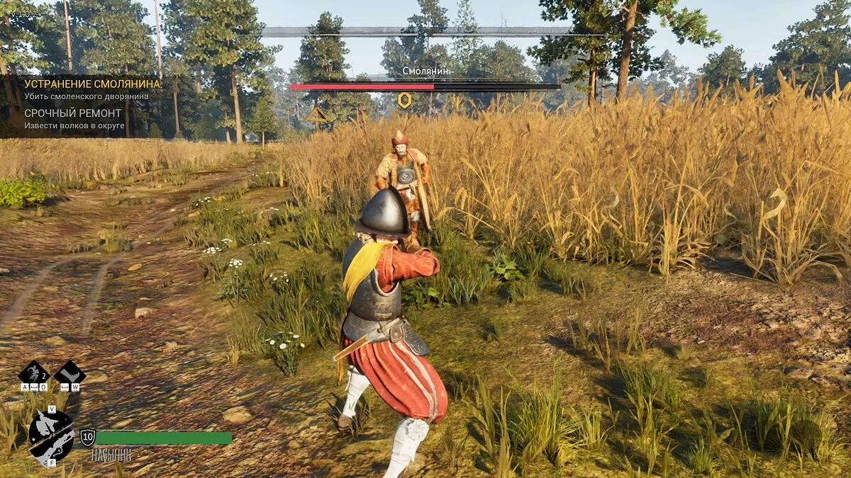 Квест начнётся после того, как вы побеседуете с Киршей по окончании сражения с поляками. Сперва обратитесь с Григорию, чтобы ещё раз опробовать боевые навыки. Только сейчас противник будет посложнее предыдущих: используйте увороты и блокирование, чтобы победить его.