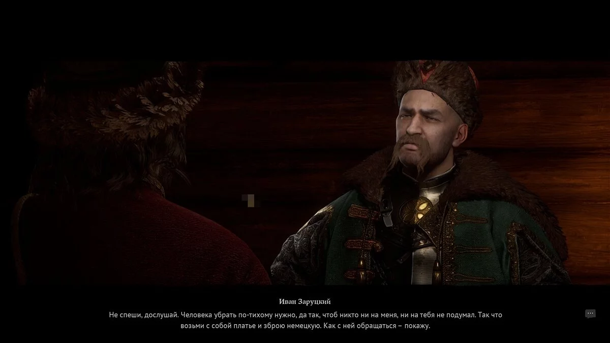 Вернитесь к Заруцкому к избе в лесу и возьмите следующее поручение. На этот раз он просит устранить одного боярина, который будет проезжать в этих краях. Однако для этого придётся сменить одежду — для этого отлично подойдёт одеяние немца. Так вы получите доступ к этому скину и сможете использовать его в дальнейшем прохождении.
