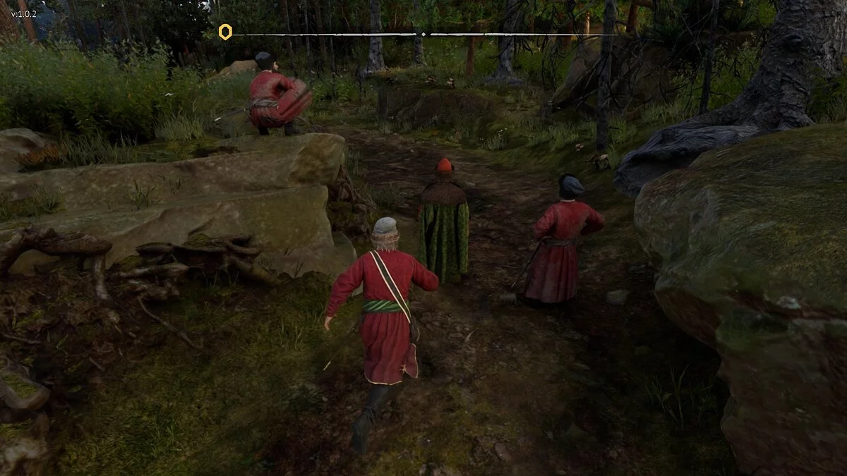 После катсцены вы окажетесь на тропе, где сможете осмотреть трупы солдат. В конце неё будут разбойники — проще всего избавиться от них по стелсу. Убив хотя бы одного из врагов таким образом, вы получите ачивку «Четырдесят седьмой». Всего предстоит ликвидировать четырёх врагов.