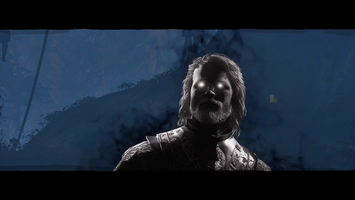Проходим по единственной тропе ещё дальше, чтобы наткнуться на стаю волков. Сразу после победы над ними запустится катсцена, в которой перед Юрием предстанет Иринарх.