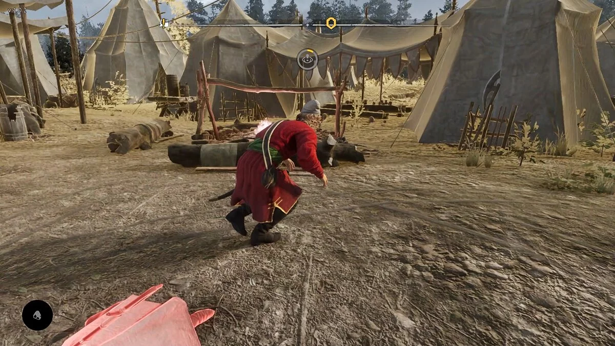 Используйте камни для отвлечения врагов, затем нападайте на них сзади и скрытно убивайте. Чтобы не привлекать внимание, по пути можете гасить факелы. Если поднимете тревогу, задание будет провалено. Когда доберётесь до пороха и взаимодействуете с ним, придётся одолеть ещё несколько групп врагов независимо от того, убили ли вы всех в лагере или нет.
