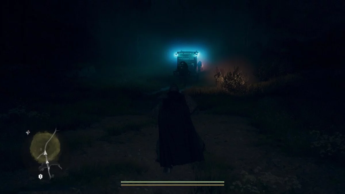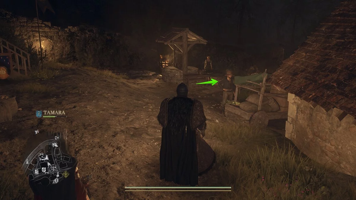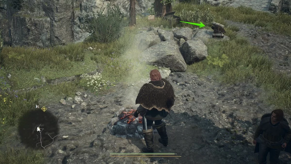 Следуйте за мужчиной мимо сожженных ворот и обязательно откажите Грегору, чтобы он продолжил ждать вас на этом месте. Добравшись до костра, Ян предложит сделать привал и подождать до вечера. Если у вас нет походного ранца (а скорее всего так и будет), не расстраивайтесь. Прямо рядом с костром как раз лежит один такой предмет.