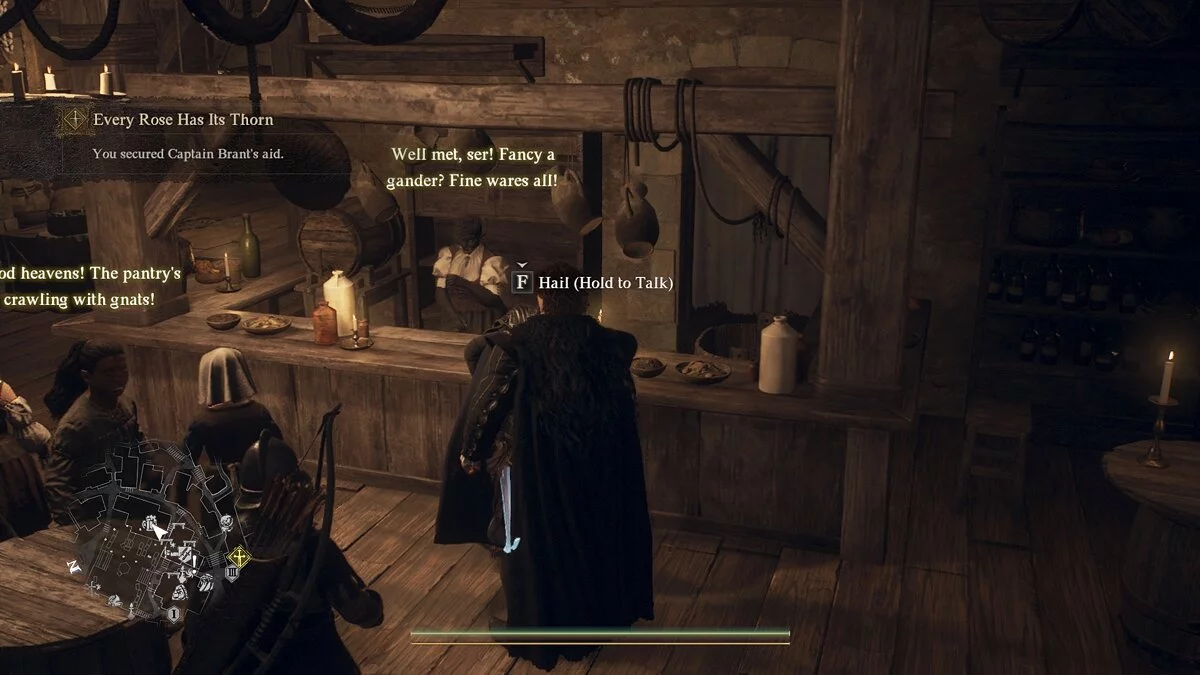 На перекрёстке между аптекой и трактиром будет стоять невысокий парень с мечом и щитом. Если начать с ним диалог, то он попросит помощи: его брат оказался в беде совсем неподалёку от этих мест.
