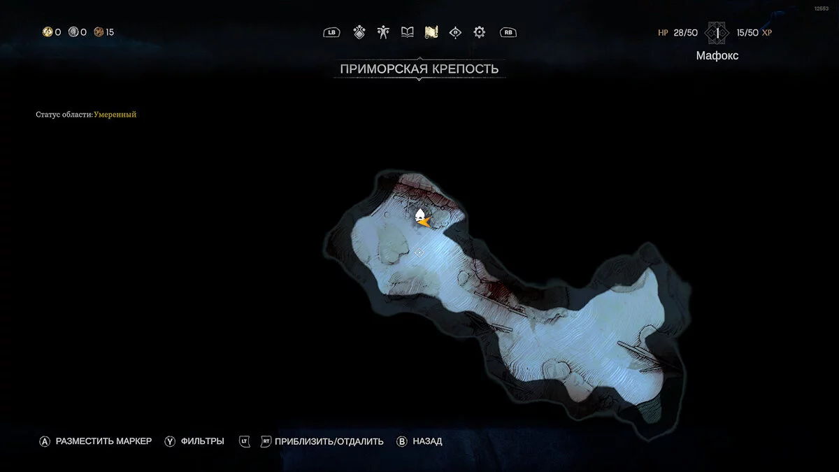 - Карта — карта местности, скрытая туманом войны. Со временем туман снова закроет карту, восстановив в пройденной местности врагов и разбросав новые награды;