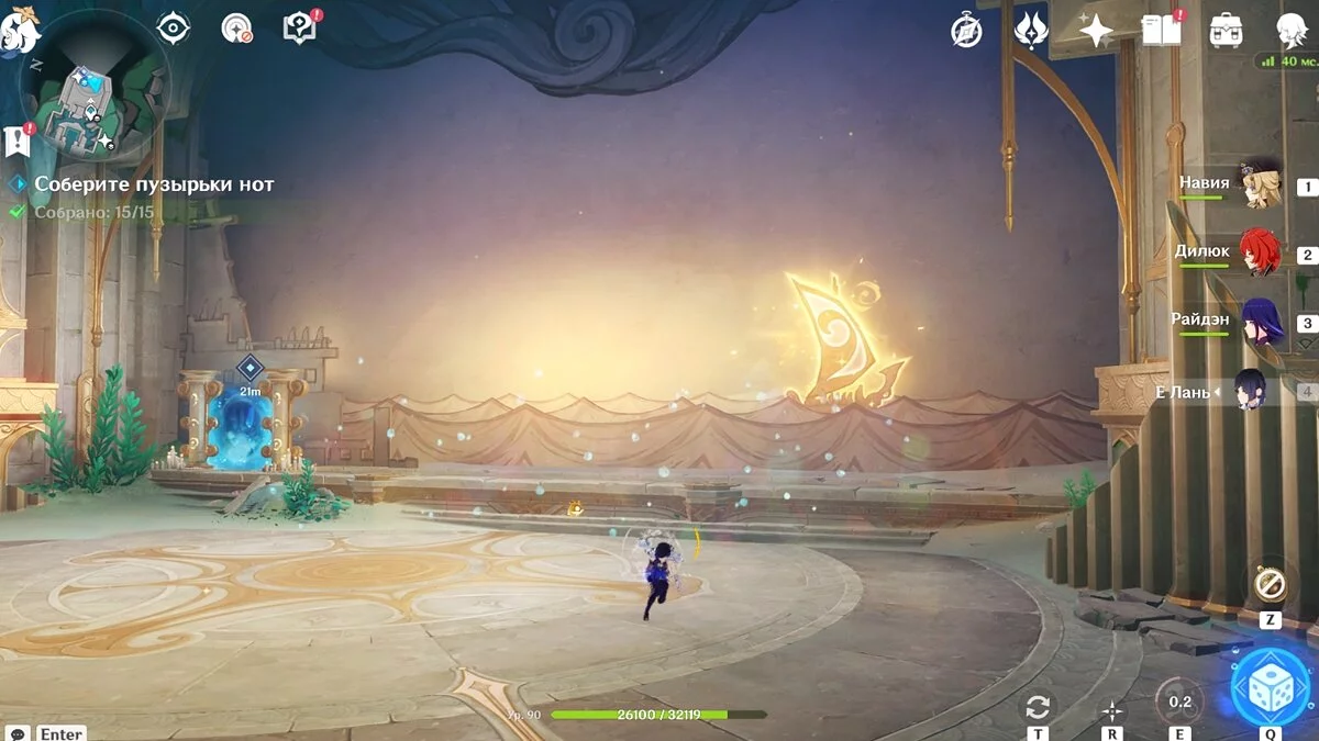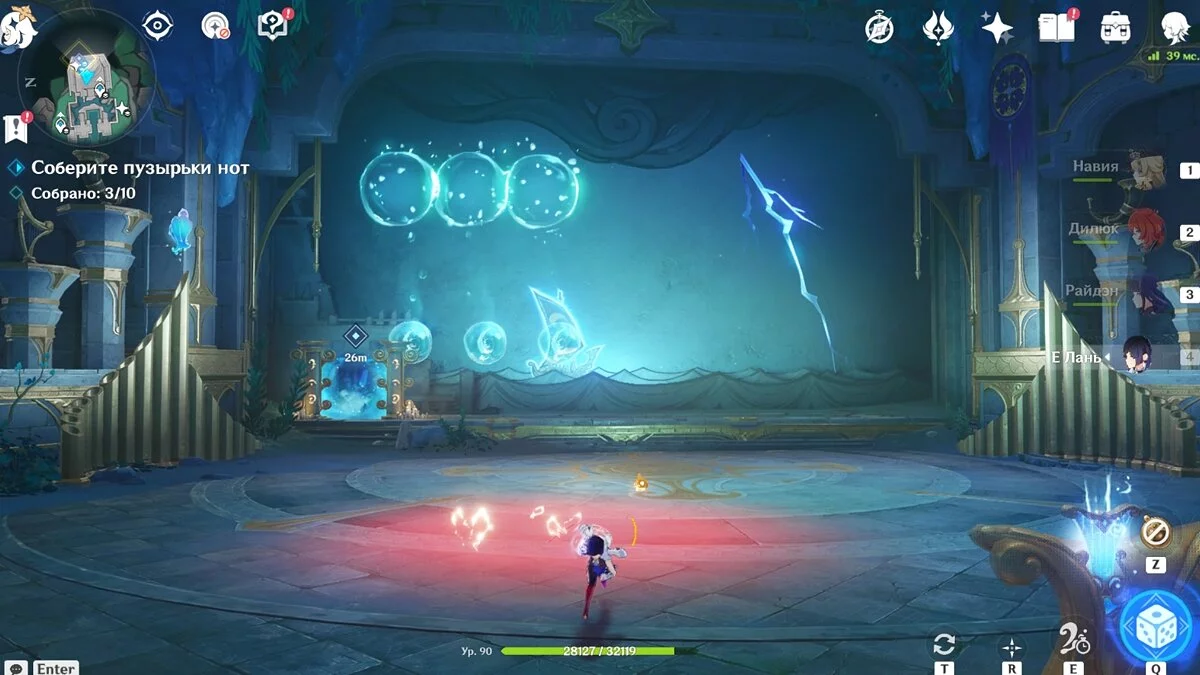 Мини-игра «Непредсказуемая сцена!» предлагает геймерам ловить пузырьки нот. Делать это легче всего при помощи новой способности. Когда пузыри будут находиться неподалёку от героя, используйте короткое нажатие на клавишу элементального навыка. В этот момент пузыри прекратят движение, а вы сможете их быстро подобрать.