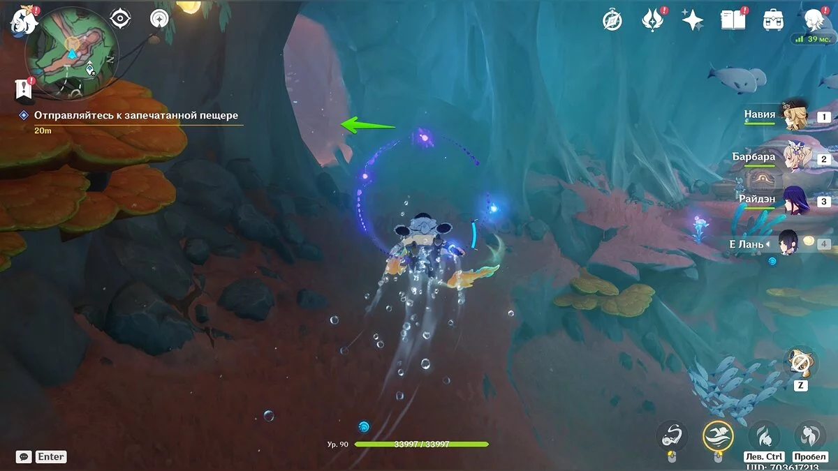 Приятели отправят вас к запечатанной пещере. Чтобы попасть туда, нужно войти в морское течение неподалёку, затем проплыть вперёд и свернуть в туннель слева.