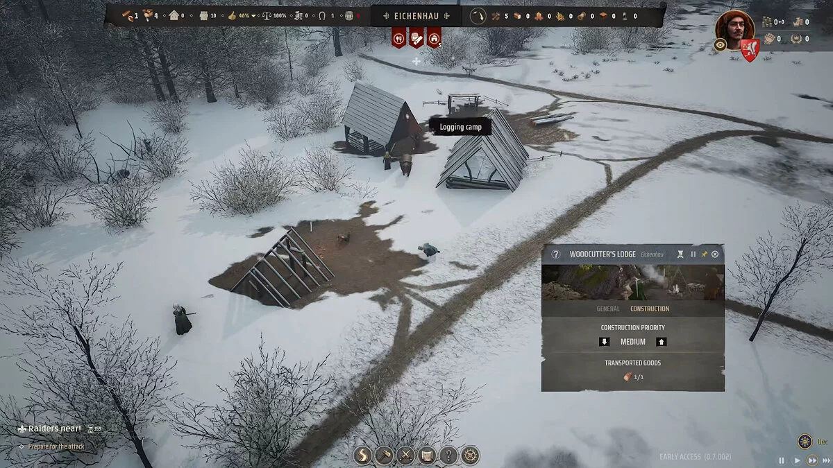 Независимо от вашего направления, необходимо поддерживать оптимальное количество древесины и производство еды с запасом на зиму. Ведь в это время нужно отапливать помещения, а количество съедобных припасов заметно уменьшится.