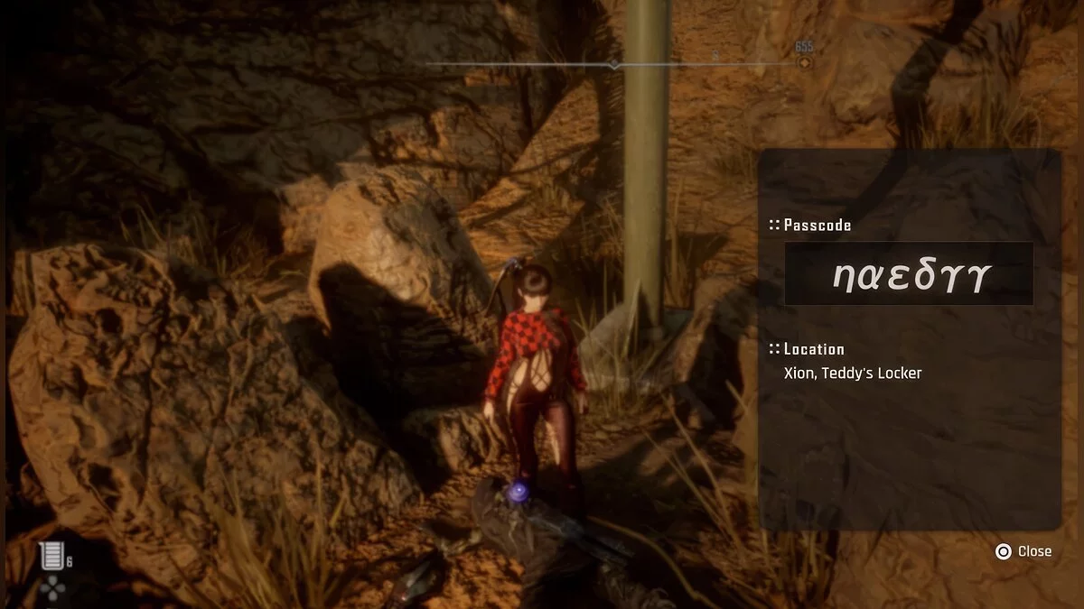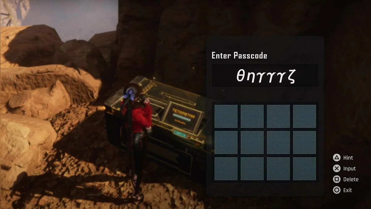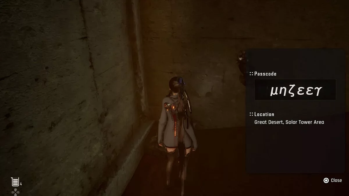 Шестнадцатый пароль. В Солнечной башне есть контейнер с расходниками и припасами. Код от него можно найти на юге пустыни, у робота, который прячется за ящиками.