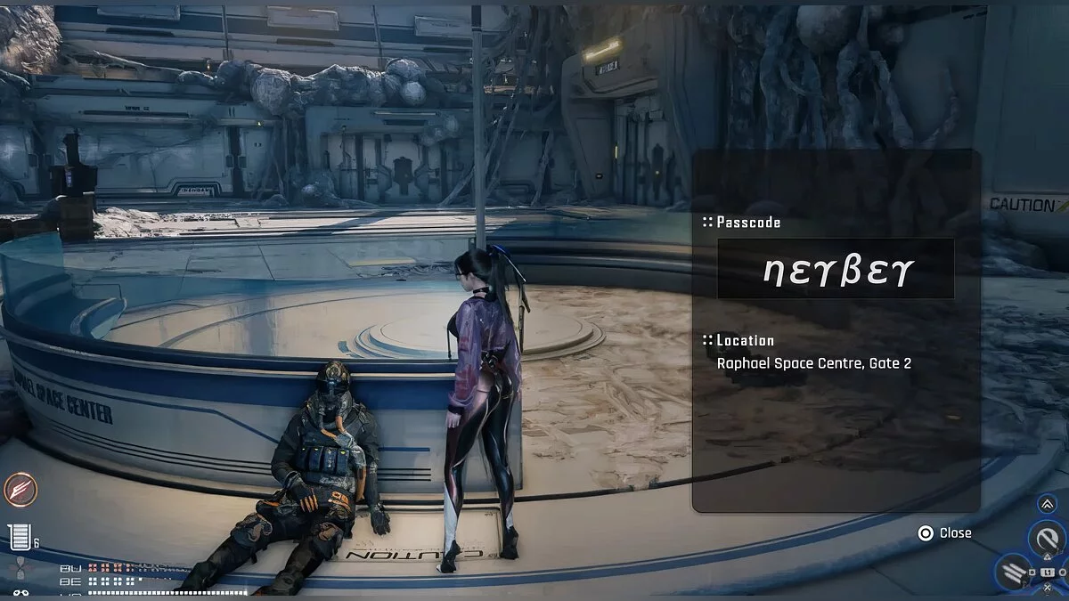 Двадцатый пароль. Когда вы окажетесь на Космическом центре Рафаэля, с левой стороны вы увидите большие ворота. Чтобы их открыть, подойдите к трупу, который находится северо-западном углу помещения. У него есть код от замка.