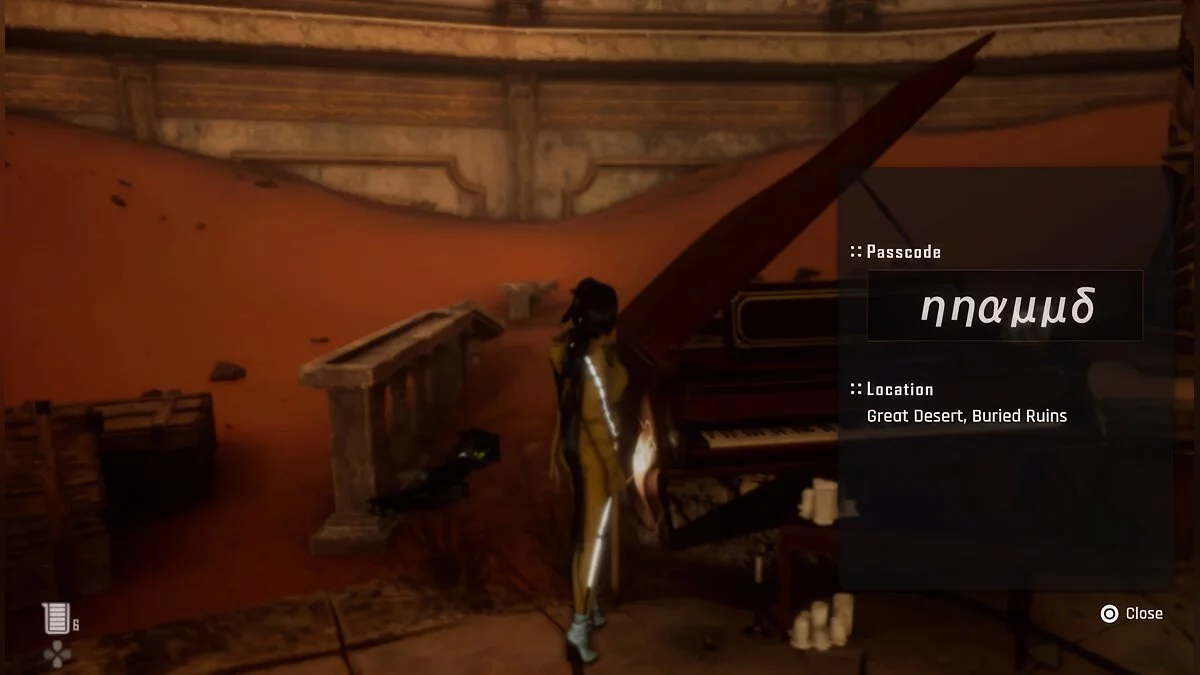 Восемнадцатый пароль. Ещё один ящик лежит в Погребённых руинах. Код от него есть у робота, который находится рядом с роялем в Оперном театре. Найти его можно в восточном углу карты.