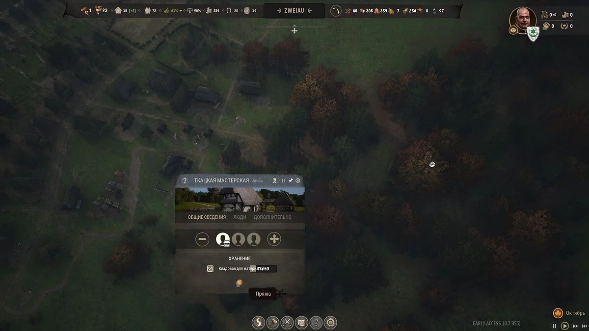 Чтобы изготовить пряжу, вам сначала нужно развести овец — как заняться овцеводством, читайте в отдельном гайде. Пастухи время от времени собирают шерсть с овец. Затем вы можете переработать её в пряжу в ткацкой мастерской. Учтите расстояния: чем больше дистанция между пастбищами, домами овцеводов, складом и мастерскими, тем больше времени будет уходить. Чтобы производство не превратилось в логистический ад, постройте достаточно погонщиков волов и прикупите самих волов.