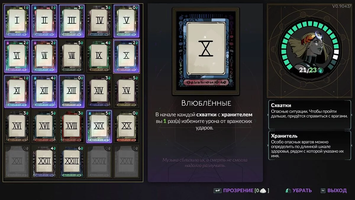 X — Влюбленные (The Lovers). В начале каждой схватки с хранителем вы 1 раз избежите урона от вражеских ударов.