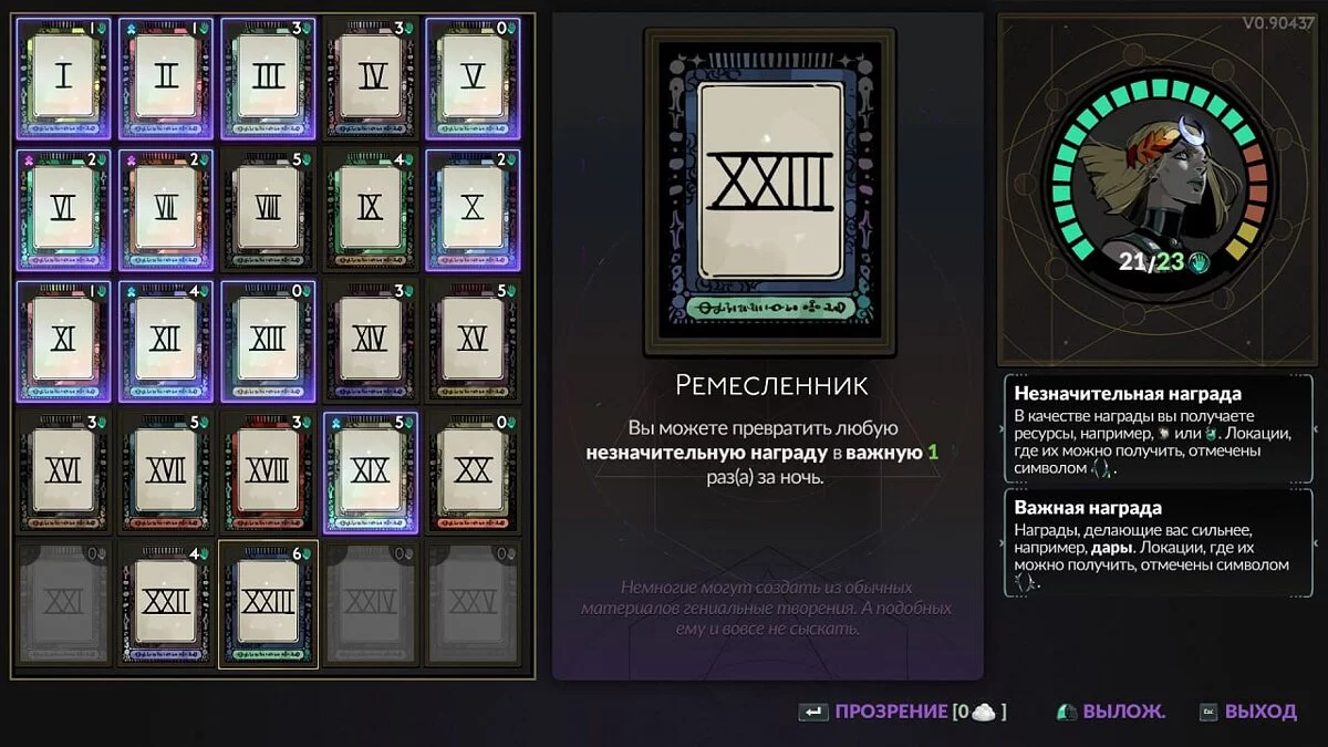 XXIII — Ремесленник (The Artificer). Вы можете превратить любую незначительную награду в важную 1 раз за ночь.