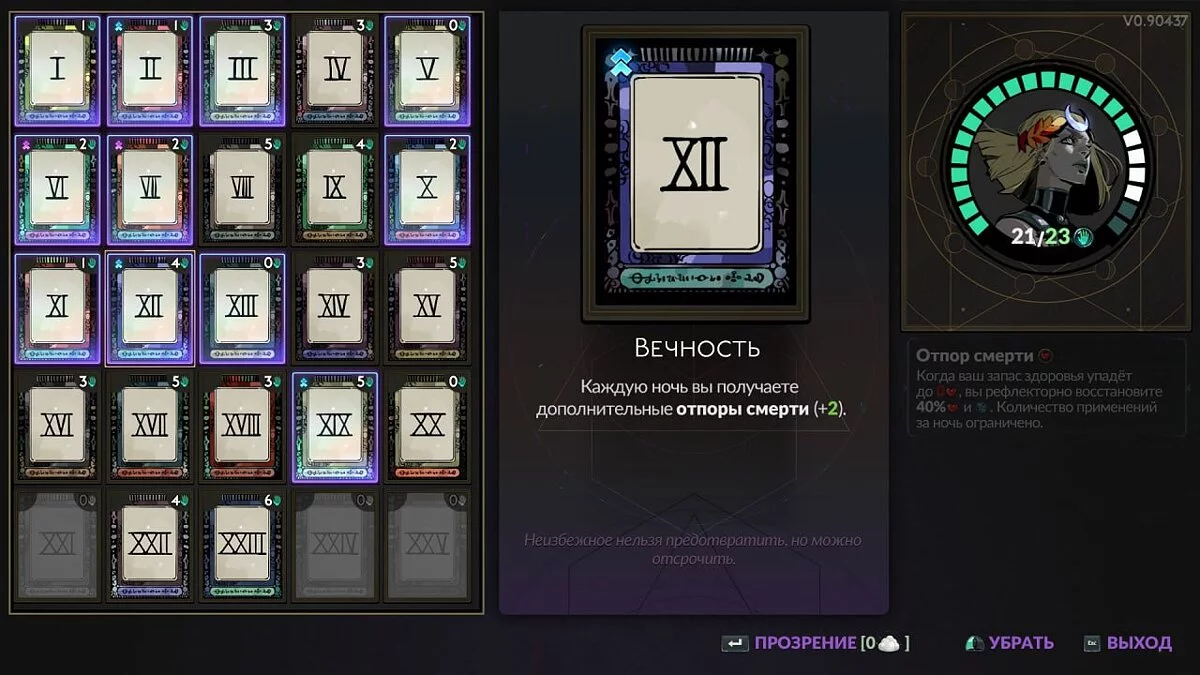 XII — Вечность (Eternity). Каждую ночь вы получаете дополнительные отпоры смерти.