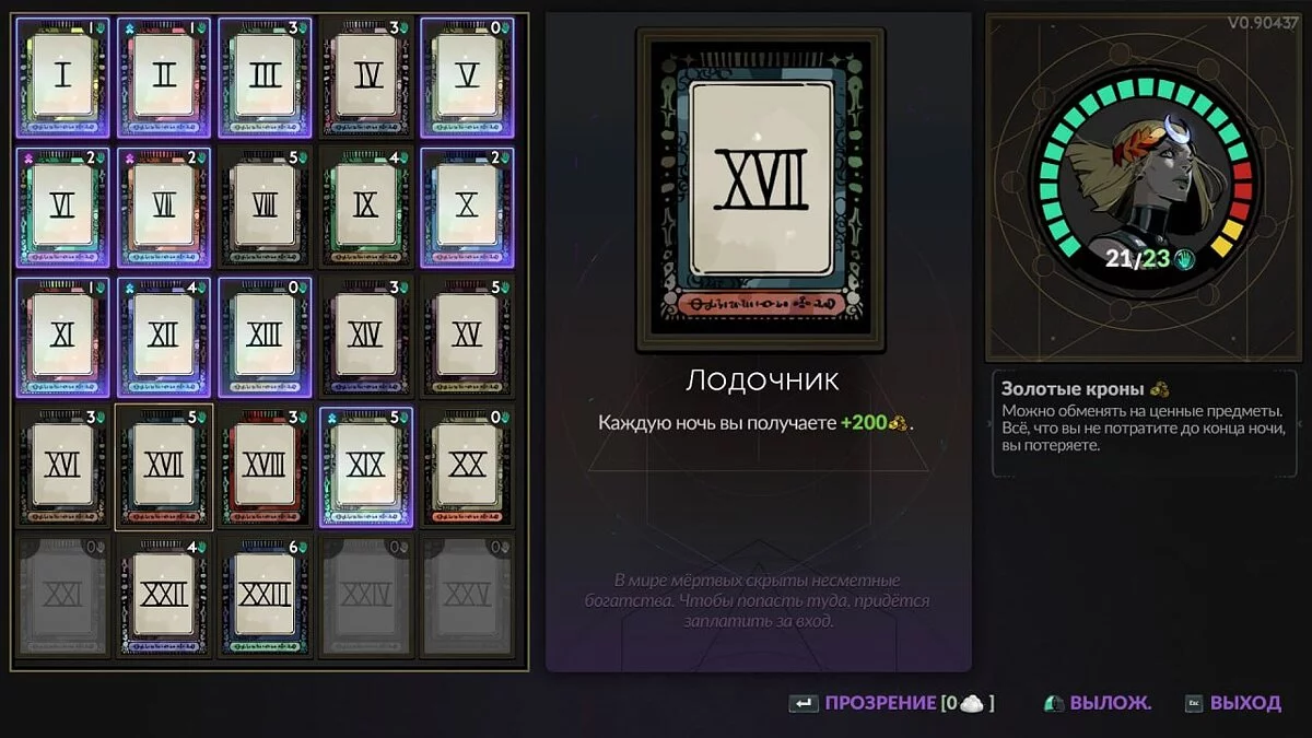 Если у вас есть лишняя хватка, то Лодочник (The Boatman) — дорогостоящий вариант, который может окупиться. Наличие 200 золотых с самого начала может дать вам большое преимущество и позволит сосредоточиться на разных комнатах во время забегов. Если вы тот, кто всегда отдает приоритет комнатам с золотыми в качестве награды, а не локациям, которые дают вам предметы или дары, этот аркан будет иметь большое значение. Вы всегда получаете больше золотых монет, побеждая врагов, поэтому вполне вероятно, что к тому времени, когда вы доберетесь до магазина Харона, у вас уже будет лишняя мелочь.