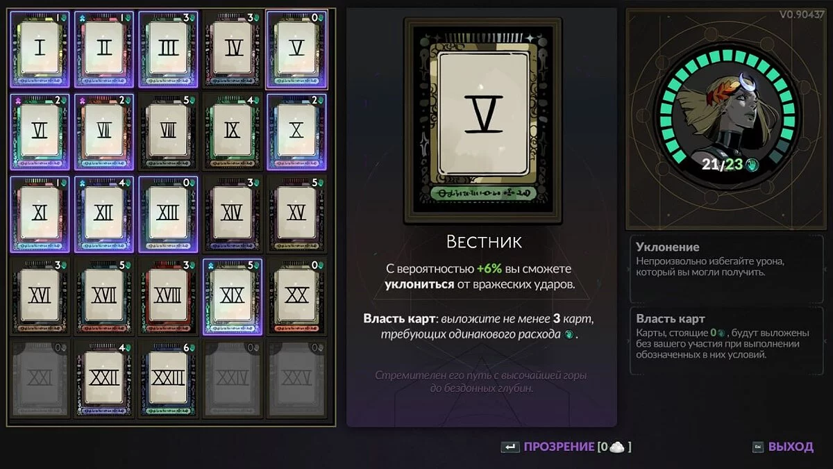 V — Вестник (The Messenger). С вероятностью +6% вы сможете уклониться от вражеских ударов. Власть карт: выложите не менее 3 карт, требующих одинакового расхода магии.