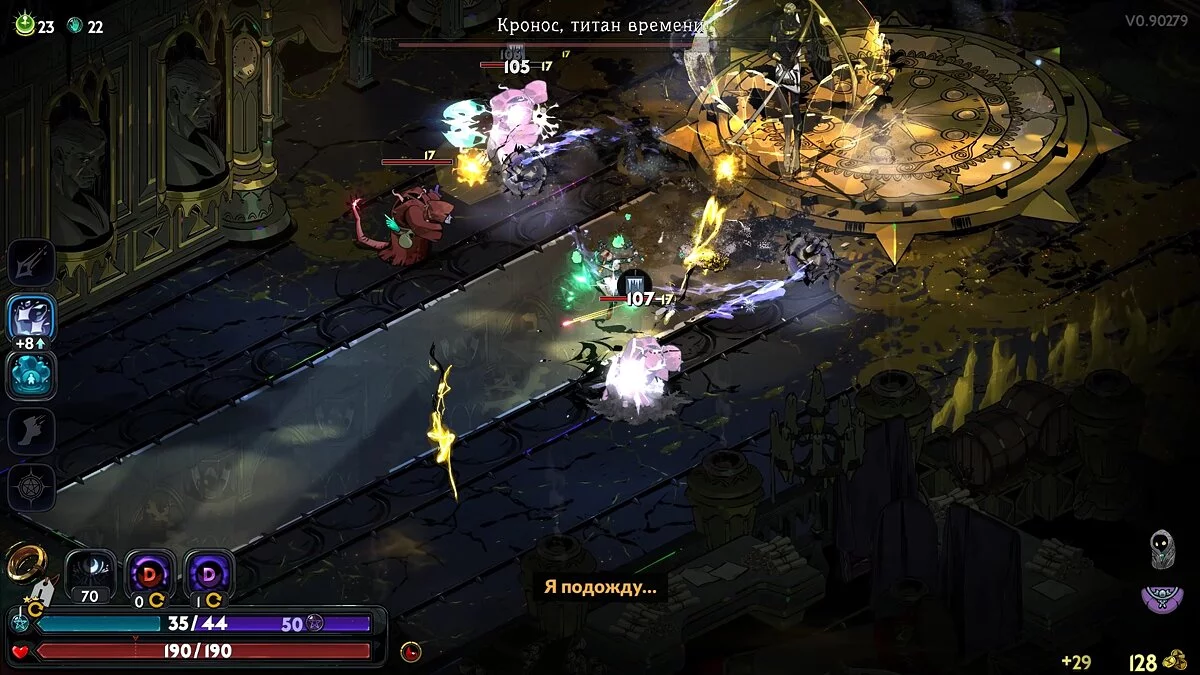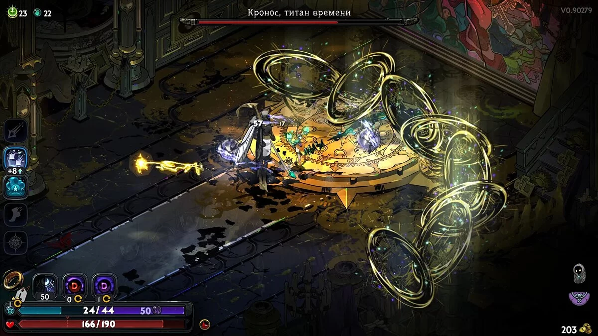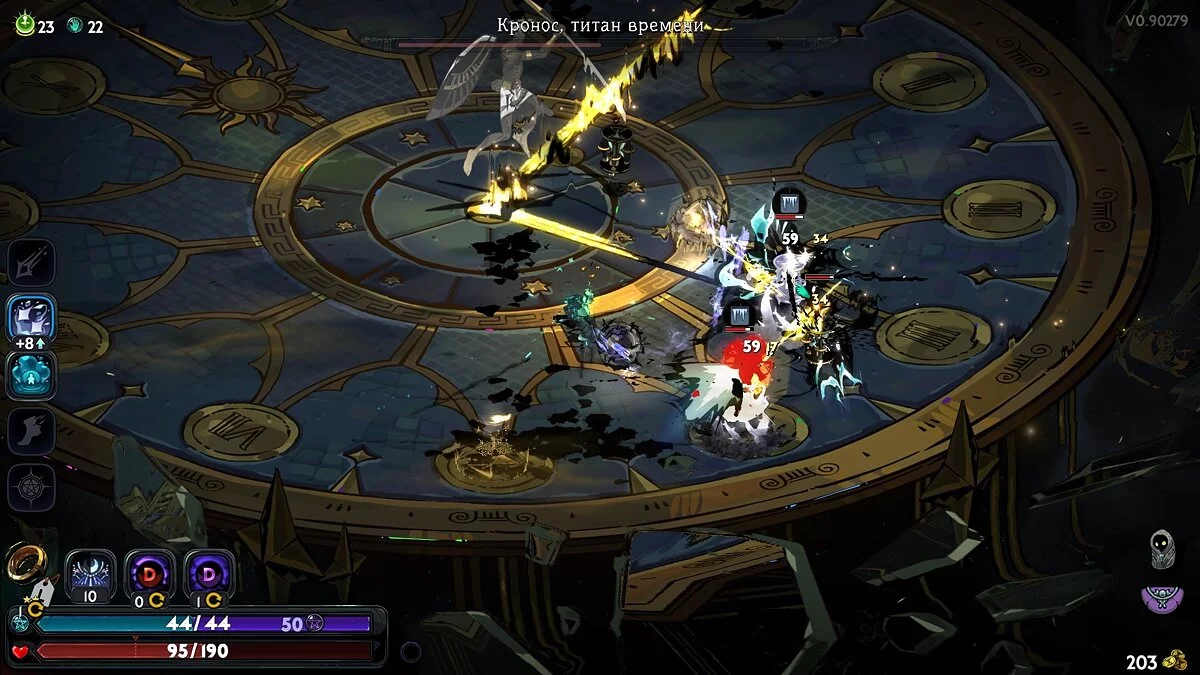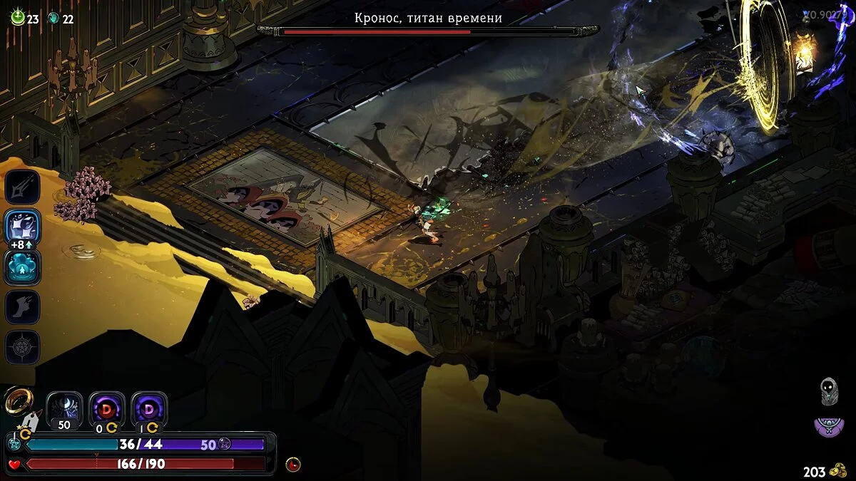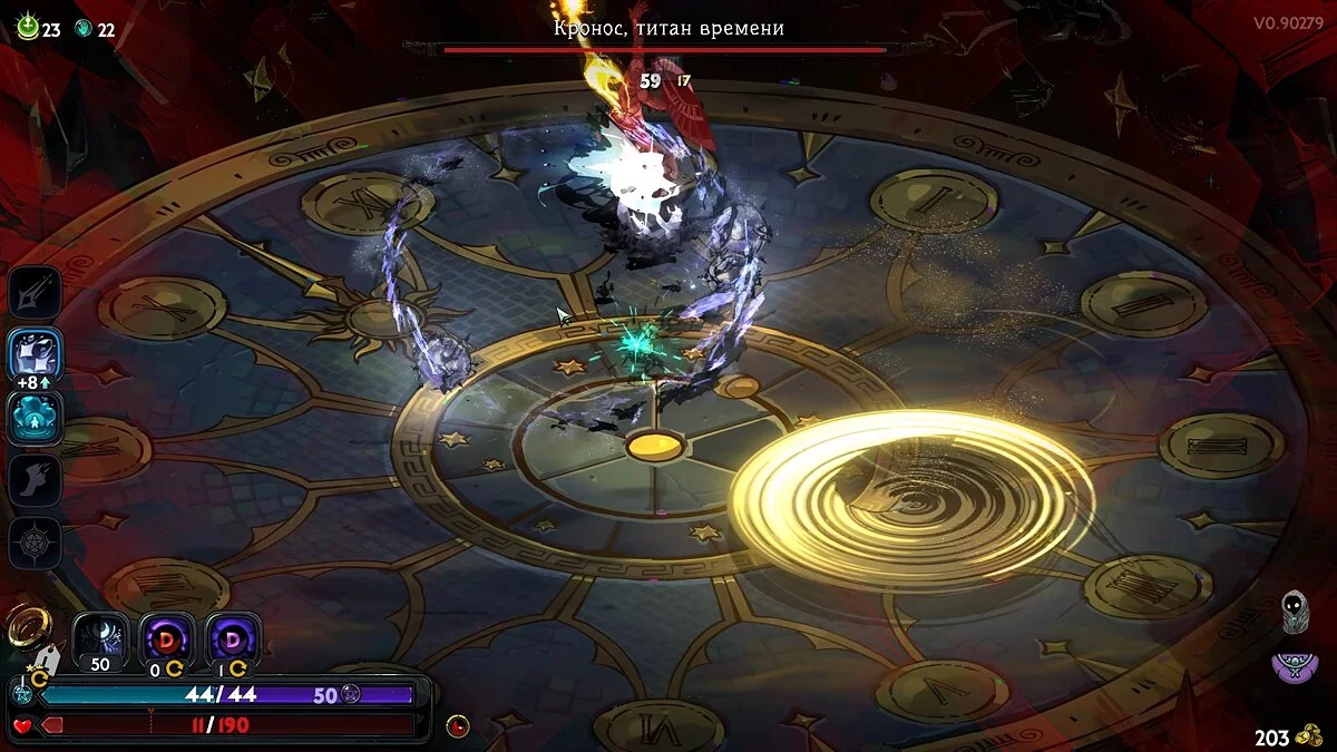 Кронос поистине самый сильный противник в Hades 2. Чтобы сразить его, пригодятся не только обычные усилители, но и дары Аида, которого вы встретите в последнем биоме после нескольких попыток. Например, нам попался дар, при помощи которого в начале сражения у босса отнимается 20% здоровья. Вам же могут выпасть другие усилители.