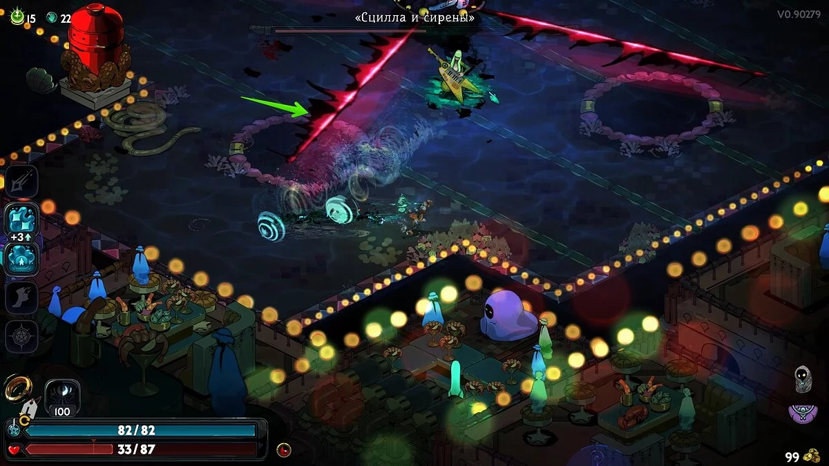 Следующая на очереди — гитаристка. Сцилла довольно медлительная и вряд ли сможет нанести вам урон дальними атаками, ведь они тоже не очень быстрые. Поэтому лучше всего избавиться от маячащей рядом с вами сирены с гитарой.