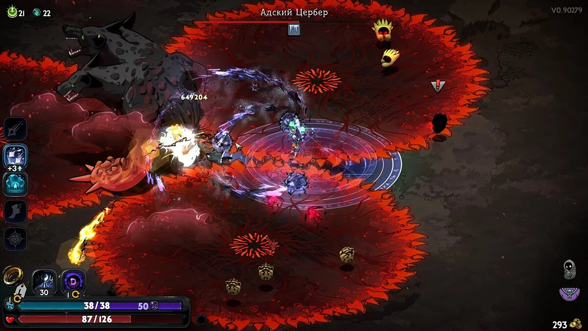 К тому же огненных шаров станет в разы больше, и поэтому увернуться от них будет сложнее. Как только у врага останется около 20% здоровья, красные круги на земле начнут перемещаться, а сам Цербер станет атаковать лапами и пытаться добраться до Мелинои.