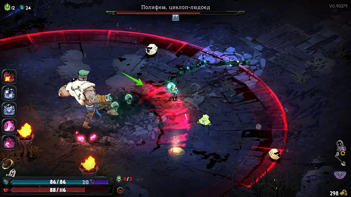 Между появлением небольших монстров Харибда будет бросаться красными шарами, которые при приземлении станут разлетаться на более мелкие, а затем и вовсе взорвутся. Просто вовремя увернитесь от них.