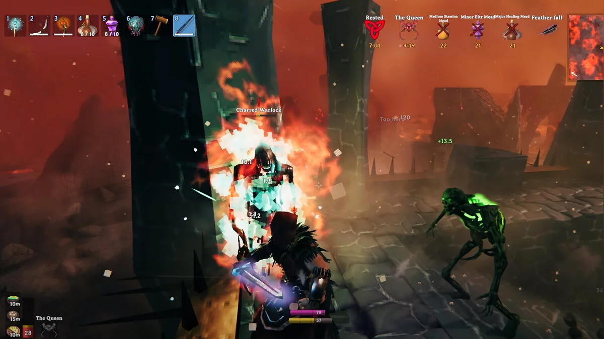 Эти бойцы крайне опасны в ближнем бою. Их атаки медленные, но непредсказуемые, ведь сложно предугадать заранее, когда они нанесут удар двуручником. Рекомендуем убивать обугленных воинов издалека. Если же пришлось сражаться на мечах, ждите атаки врага, уклоняйтесь или парируйте и бейте в ответ.