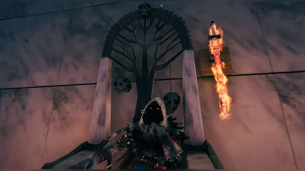 Вторая локация, где можно найти осколок клинка Дирнвина. Чтобы попасть в здание, вам нужно прорубить стену киркой из чёрного металла. Как и в случае с алтарем меча, его защищает Монумент Мучений.