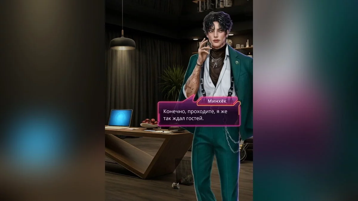 Вы потребовали объяснений от Минхёка. Он предложил зайти. Его кабинет оказался даже слишком просторным, да и дизайн интерьера отличался от других комнат в агентстве. Тёмные тона и приглушённый свет настраивали на отдых, а не на труд. Ваша героиня напрямую задала вопрос, почему парню обеспечили такие роскошные условия для работы. Оказывается, директор хочет удержать Минхёка, поэтому готов согласиться с его требованиями. А в вашем зале он появлялся, чтобы задеть и вызвать интерес. Вы хотели осмотреть кабинет, но решили быть осторожнее, чтобы не спровоцировать автора песен. Между тем, удалось заметить, что книги удивительно точно сочетаются с интерьером.