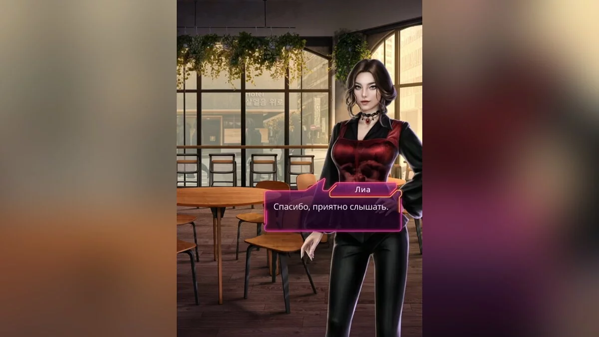 Ваша героиня приехала в уютное кафе с красивым видом из окна, которое расположено в самом центре Сеула. К вам подошла девушка, которая представилась как менеджер Лии. В её глазах можно было заметить недовольство. Она проводила вас к самой певице. Ария и Ёна будут пить кофе неподалёку. Если что, подруги будут рады подключиться к разговору. Вы, тем временем, подсели за столик к Лие. Девушка уже знает, о чём пойдёт речь.