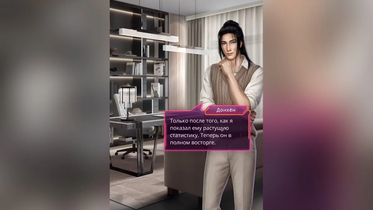 Наставник уже в курсе произошедшего. Вы заметили, что из-за совместного расследования начинаете испытывать доверие к нему. Оказывается, парень рассказал о трансляции господину Киму, и ему понравилась реакция фанатов.