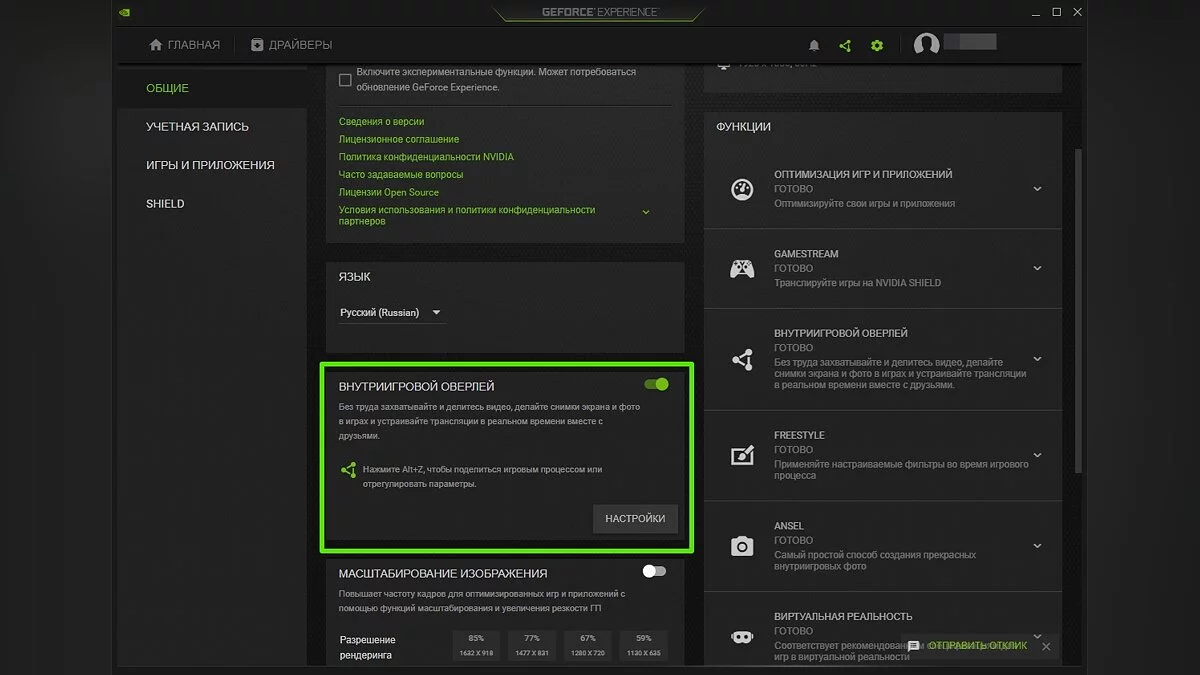 - Отключите переключатель с пункта «Внутриигровой оверлей».