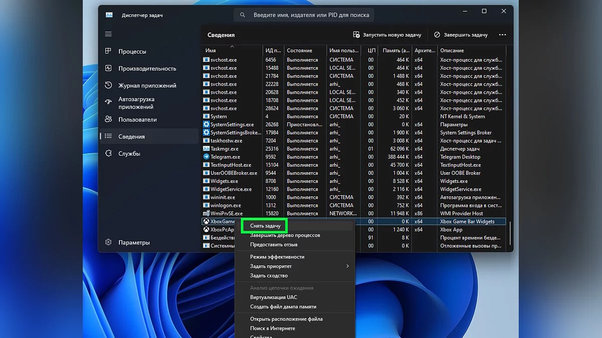 - Найдите ненужные приложения, нажмите правой кнопкой мыши и выберите «Завершить задачу».