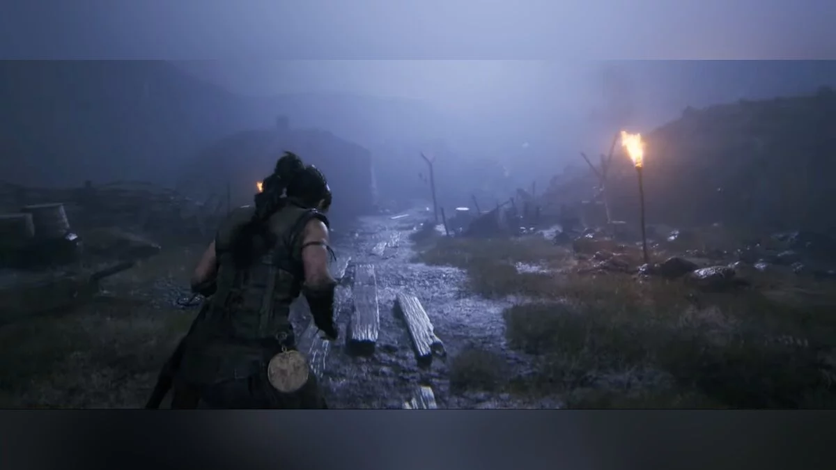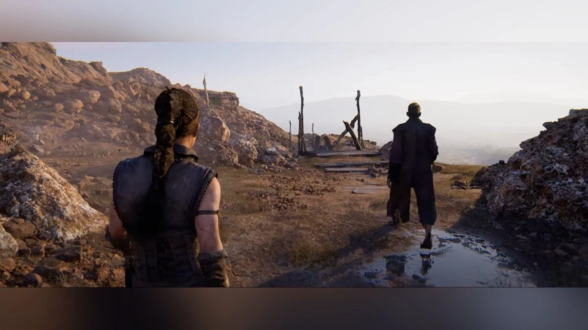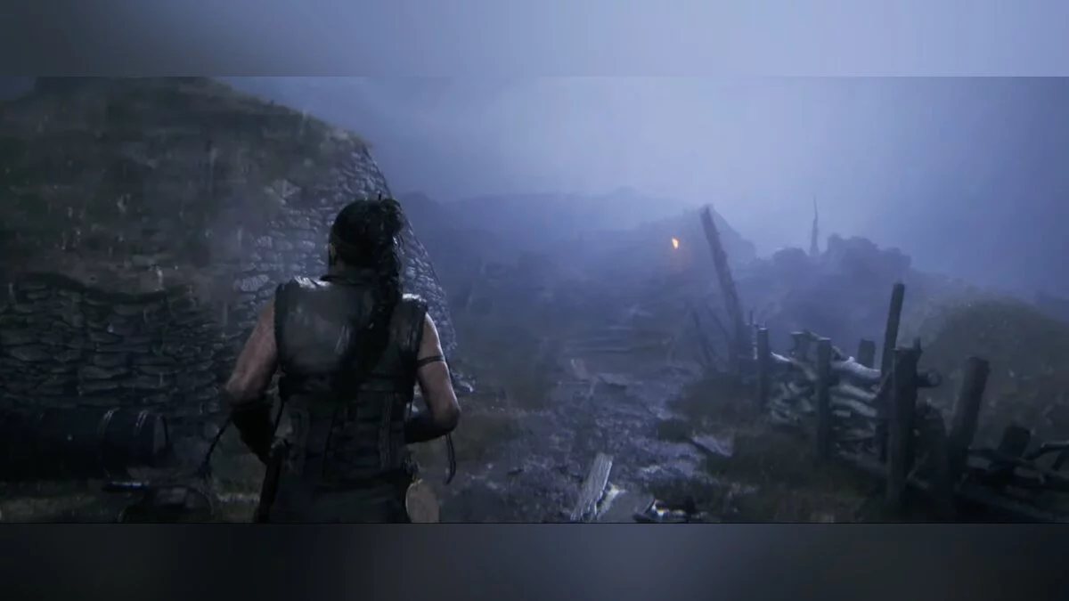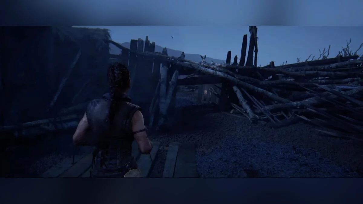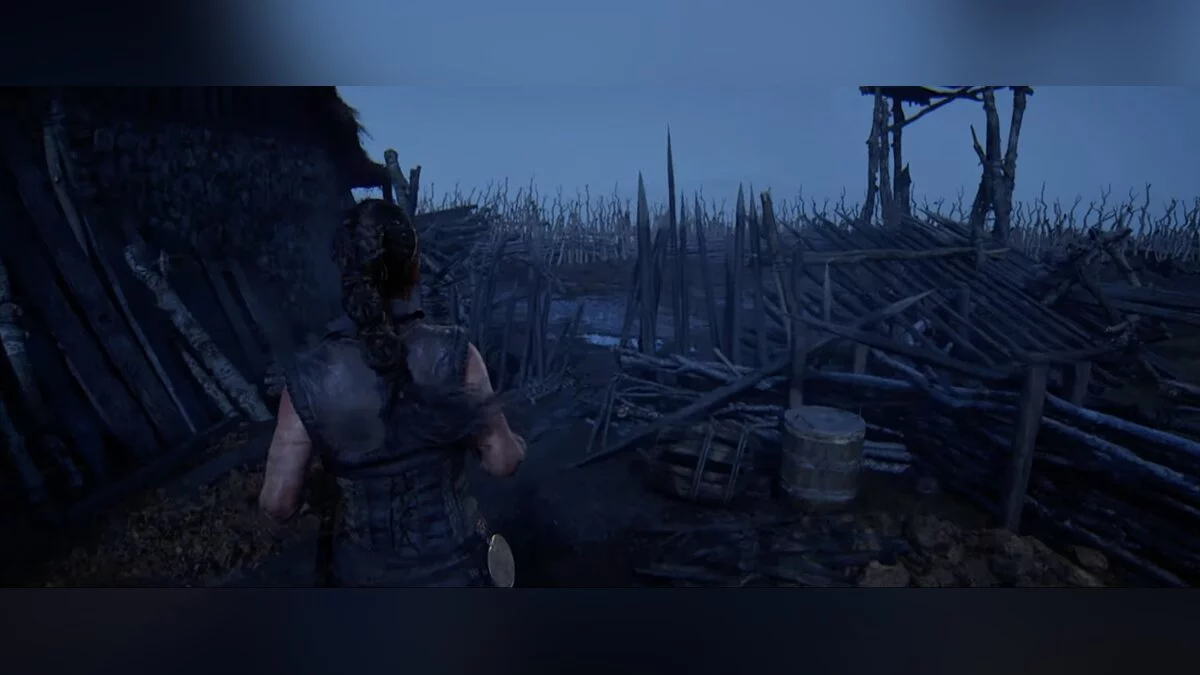 Когда спасете пленника и победите в длительной схватке всех драугров, наступит день. Новый знакомый поведет Сенуа к выходу из деревни. Не пропустите разрушенный мост. Поверните от него налево, чтобы заметить еще одно лицо.