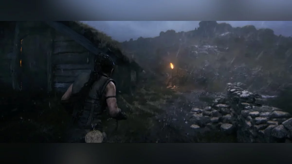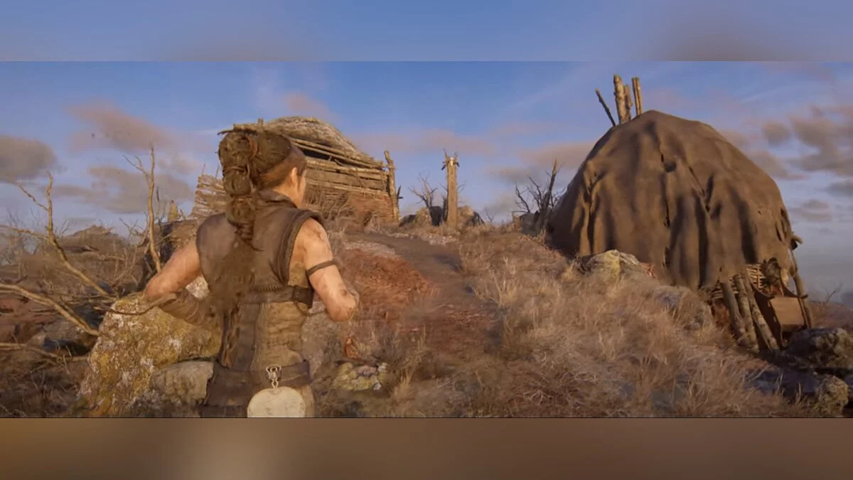 Как только видение тьмы закончится, и Сенуа вернется в реальный мир к Фаргримру, Игра подскажет спускаться с холма. Не спешите этого делать и обогните его по правой стороне. На вершине стоит дом. Там же вы сможете услышать диалог двух поселенцев. Рядом со строением тотем.