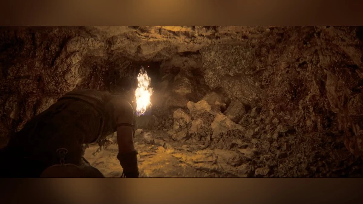 После затопленного коридора вы окажетесь в комнате с двумя жаровнями. Эту головоломку нельзя пропустить. После того как зажжете второй огонь, появится мост. Перейдите его, чтобы попасть на дорогу вглубь пещеры. Держитесь правой стороны, чтобы найти скрытый уступ и спрыгнуть к тотему.