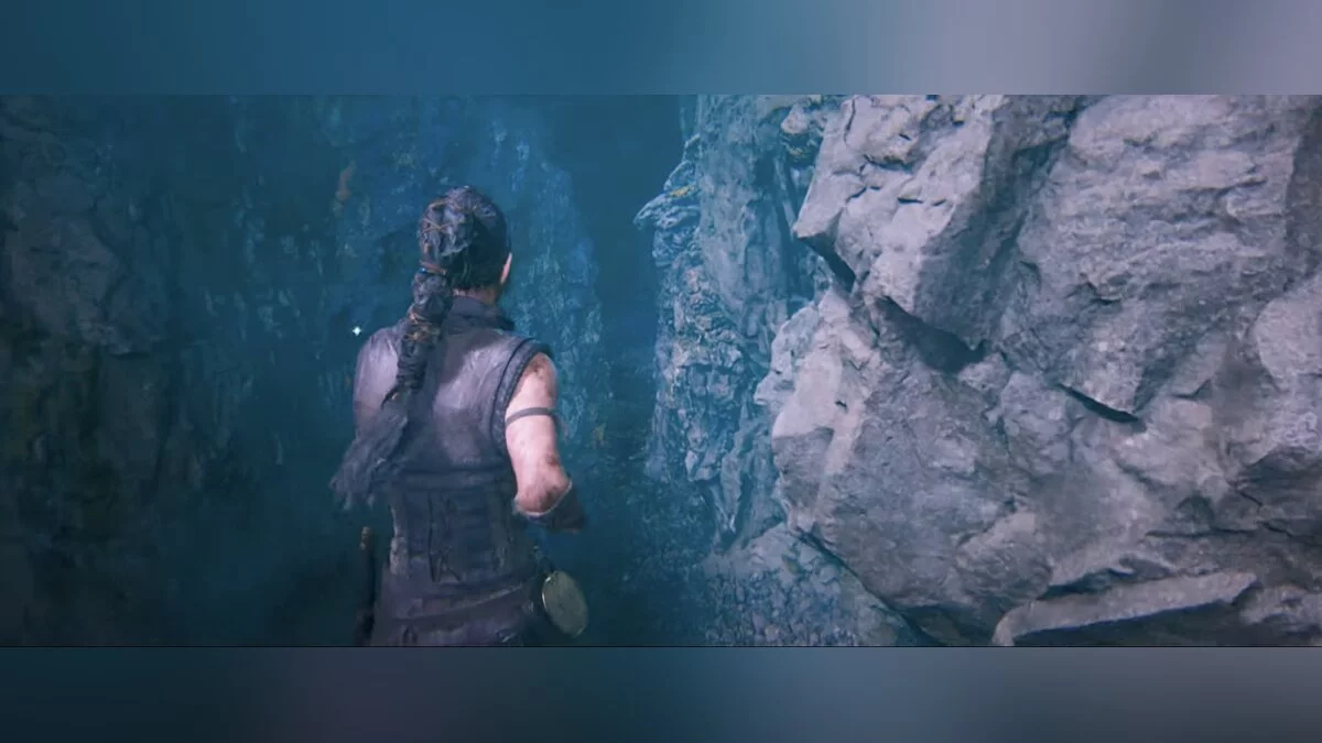 По сюжету доберитесь до расщелины, в которую Сенуа должна спрыгнуть. Вы окажетесь в воде. Сразу же развернитесь и идите до конца коридора. Лицо будет в тупике.