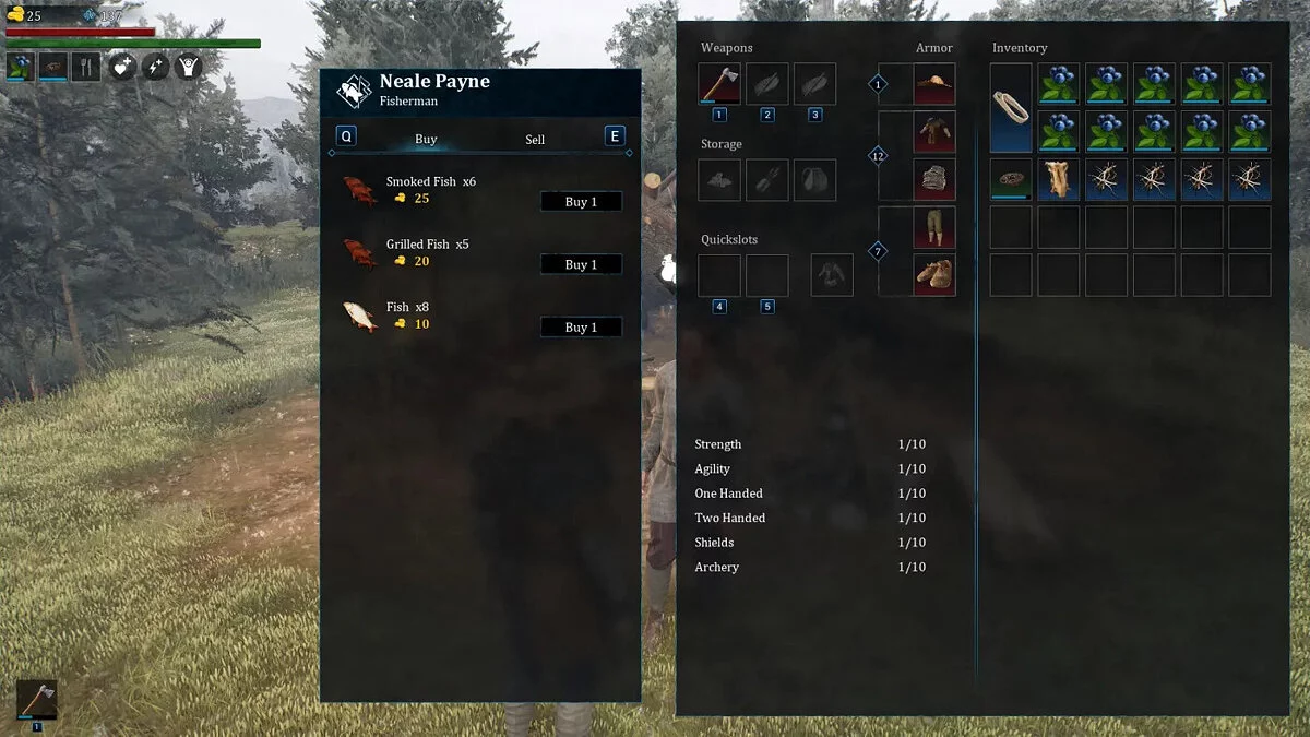 В идеале у вас всегда должен быть заполнен хотя бы один слот для еды. Даже простые съедобные продукты, такие как ягоды и грибы, повышают здоровье и выносливость. Если ваш герой путешествует голодным, он будет медленным и крайне уязвимым, особенно если нарвётся на разбойников.